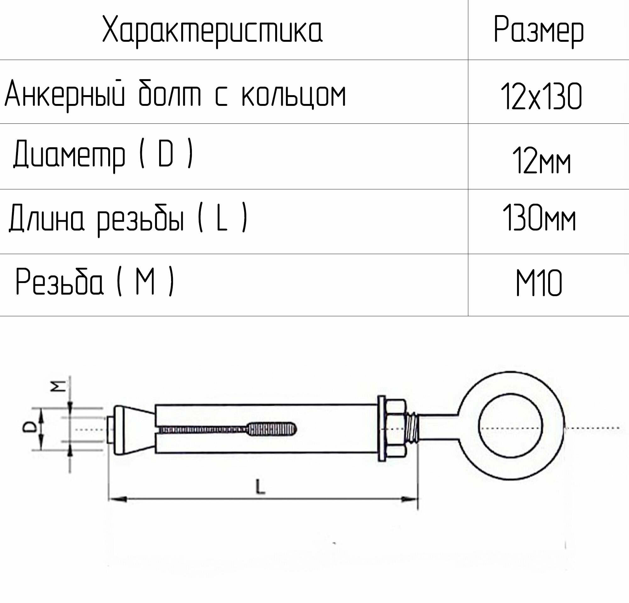 Анкерный болт с кольцом 12х130, 2шт. информация: