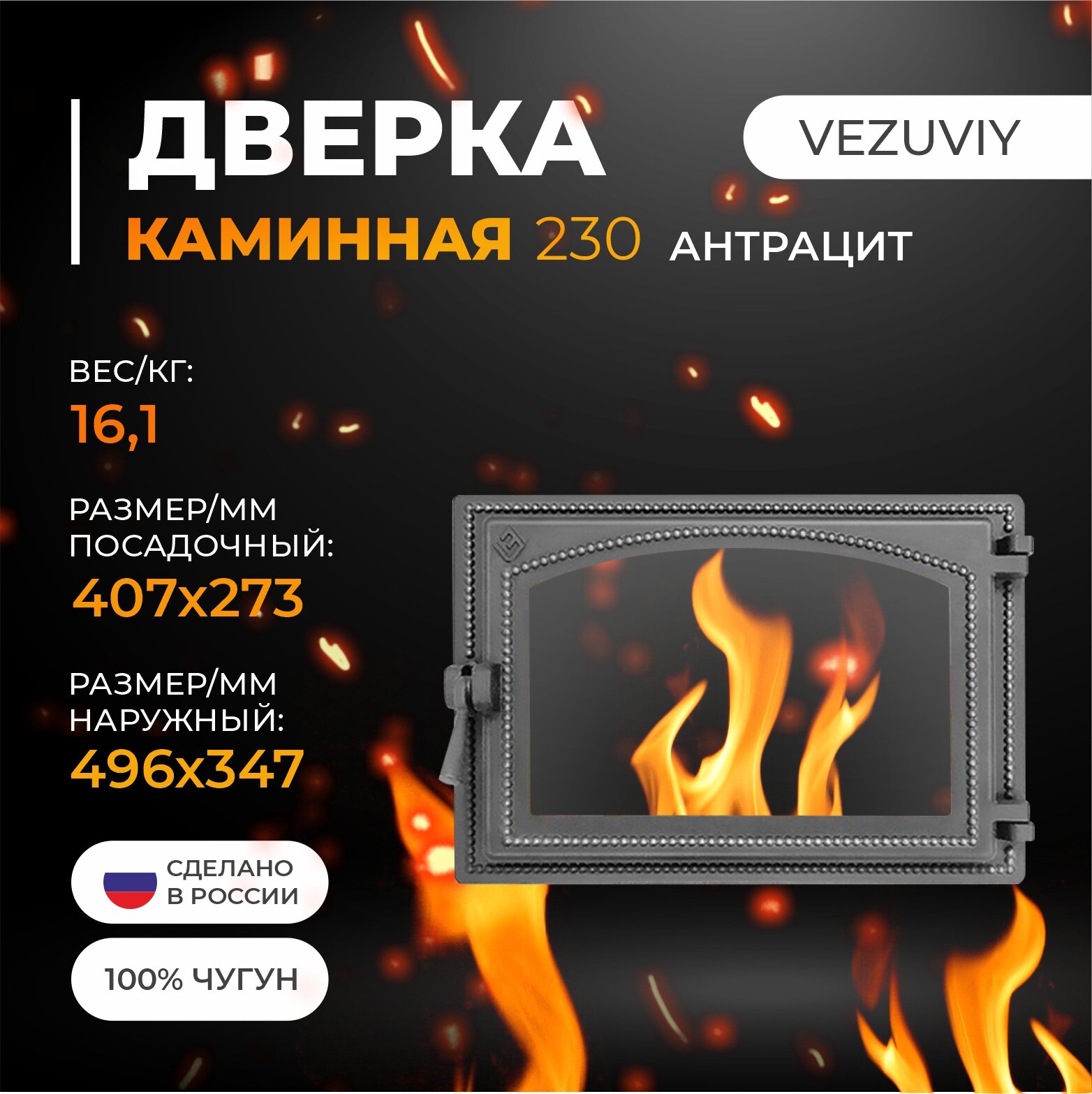 Дверка везувий каминная 230 (Антрацит) информация: