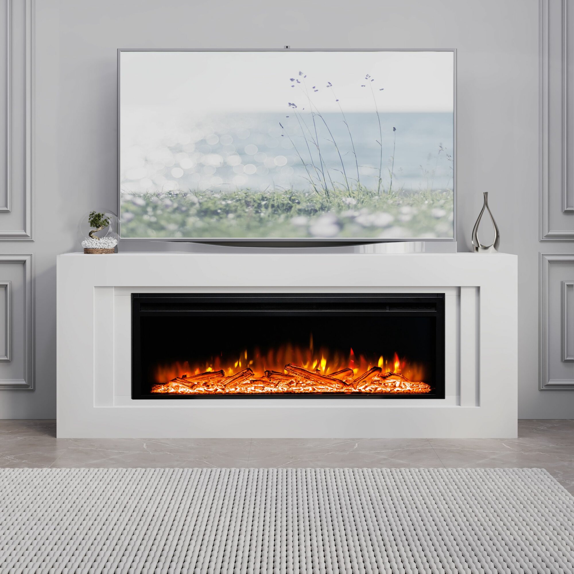 Камин электрический от ELEKAM Lines белый с очагом Pulsar 38 с дровами с обогревом и звуком потрескивания дров (Электрокамин) информация: