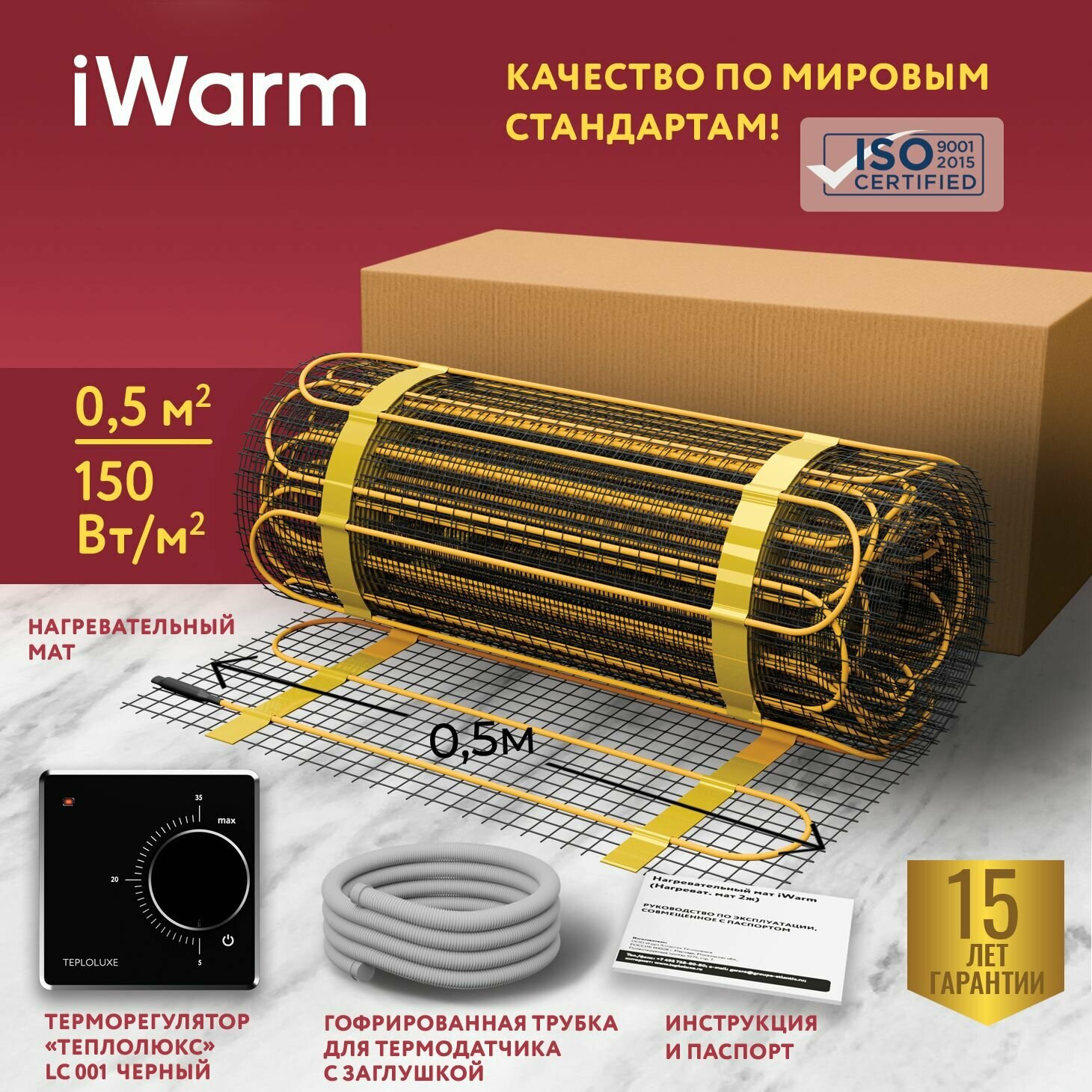 Набор Нагревательный мат iWarm 0,5 кв.м 75 Вт + механический терморегулятор LC001 черный информация: