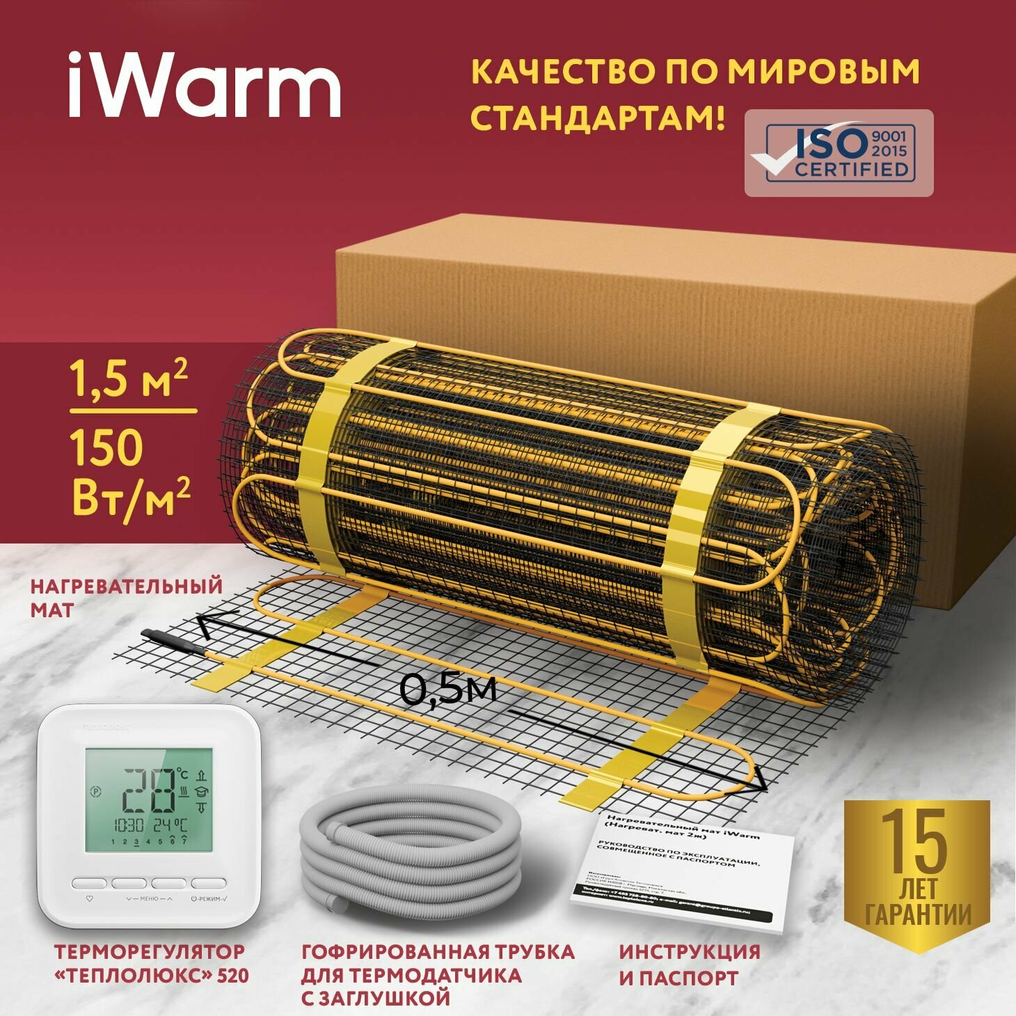 Набор Нагревательный мат iWarm 10,0 кв. м 1500 Вт+ электронный терморегулятор 520
