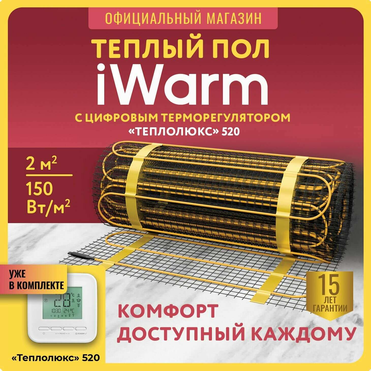 Набор Нагревательный мат iWarm 4,0 кв.м 600 Вт+ электронный терморегулятор 520 6 400 ₽