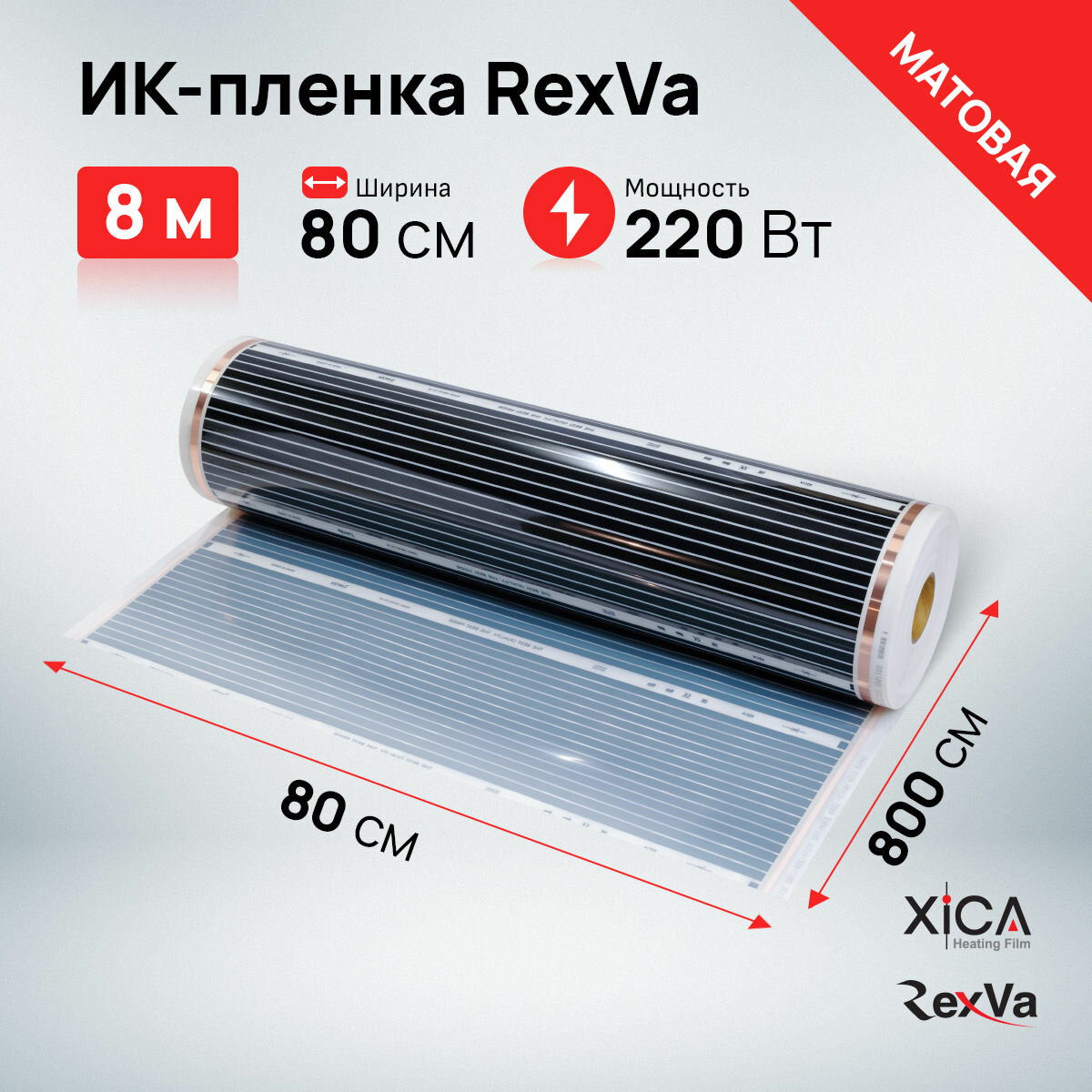 Инфракрасная пленка Rexva XM308 (220вт/м2) 0,8м*8,0м, площадь обогрева 6,4м2 информация: