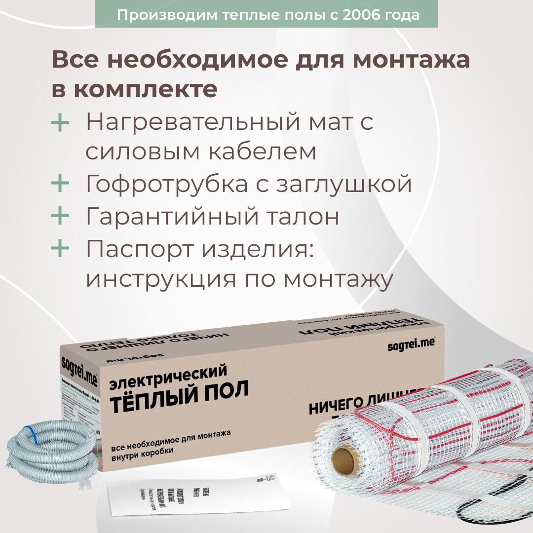 Теплый пол электрический под плитку UHK-M 150-0,5-2,5м2 терморегулятор SM160 3,5 кВт. Греющий кабель для теплого пола. Нагревательный мат информация: