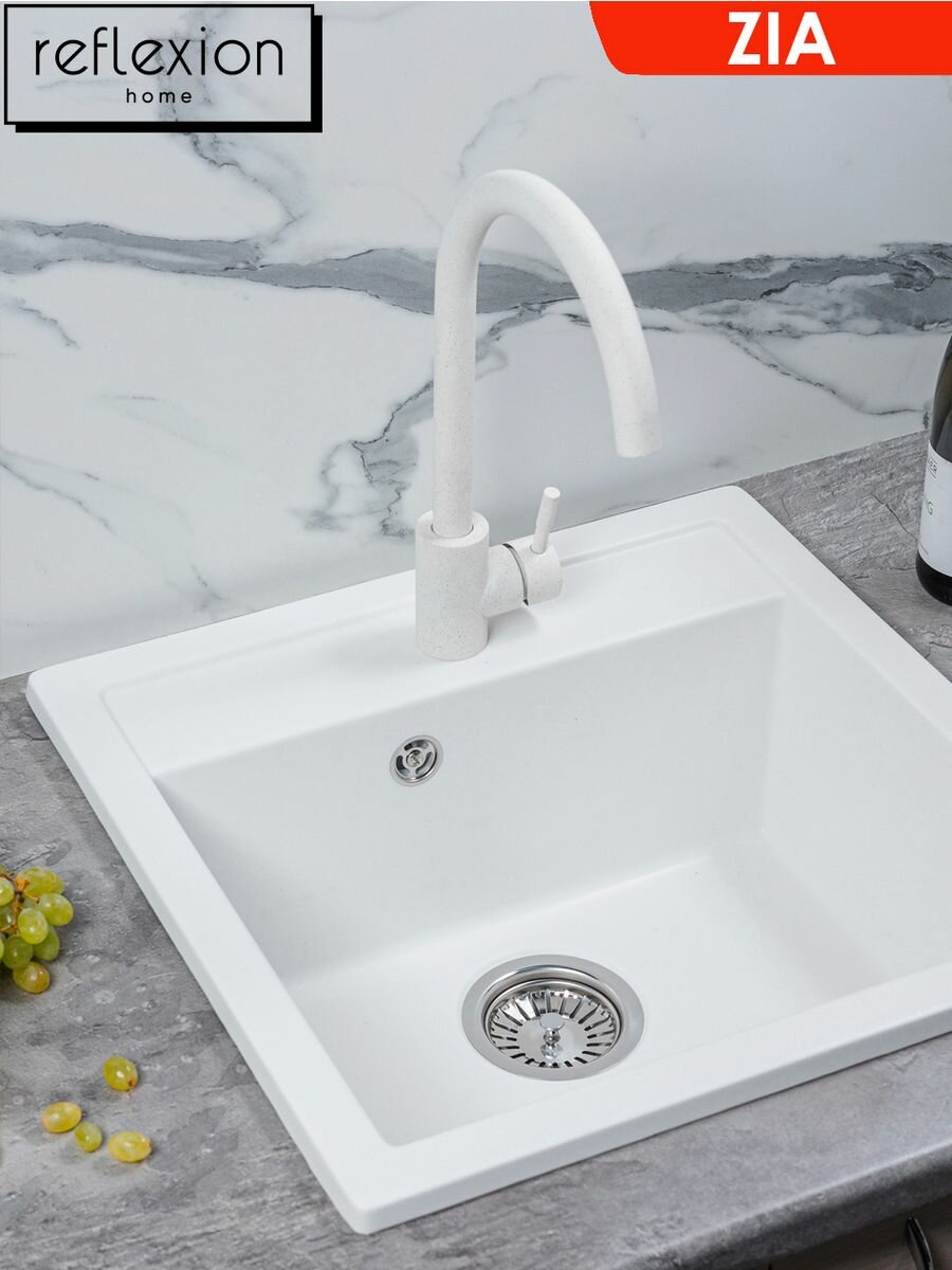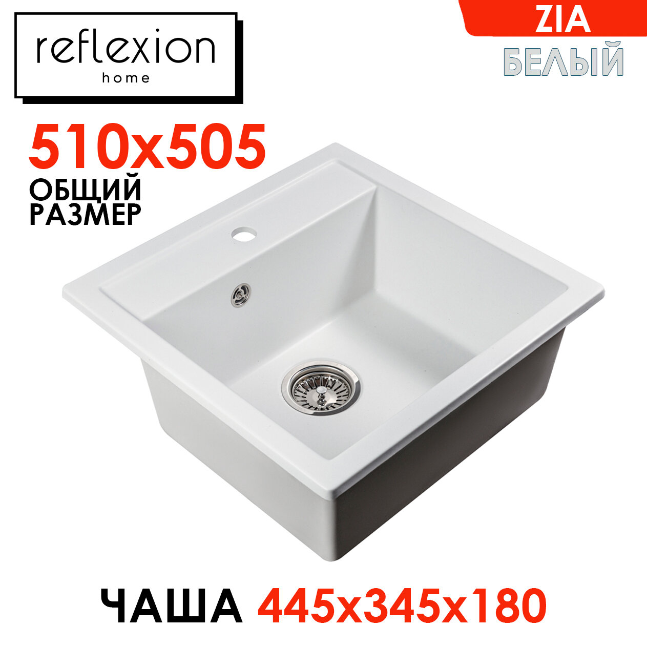 Отзывы на Кухонная мойка (сифон в комплекте) кварцевая врезная прямоугольная 51х50,5 см Reflexion Zia RX1251WH, цвет - белый