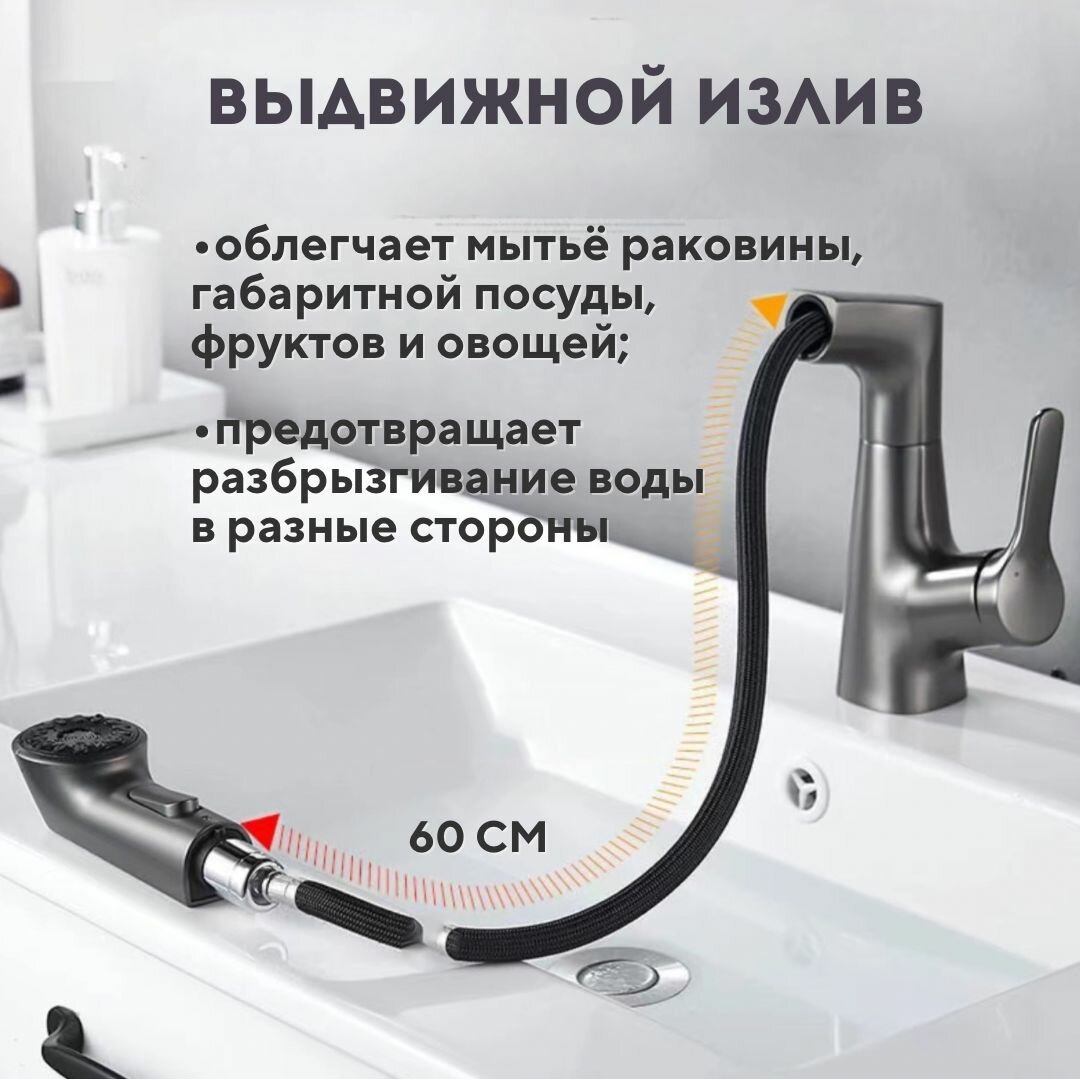 Смеситель для кухни и ванной с гибким выдвижным изливом, кухонный кран для раковины выдвижной, 2 режима лейки информация: