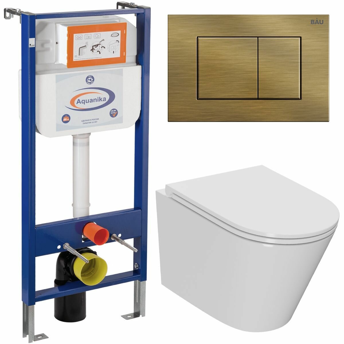 10 цен на Комплект BAU 6 в 1: инсталляция BAU Aquanika, унитаз безободковый торнадо обратного потока Bau Nimb Hurricane-2, сиденье микролифт, бронзовая клавиша