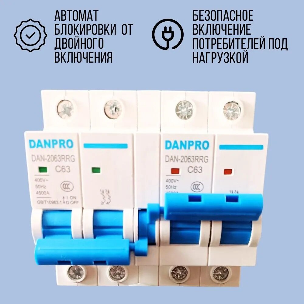 Отзывы на Рубильник реверсивный механический DANPRO, автоматический ввод резерва генератора, однофазный 2P-2P на DIN рейку