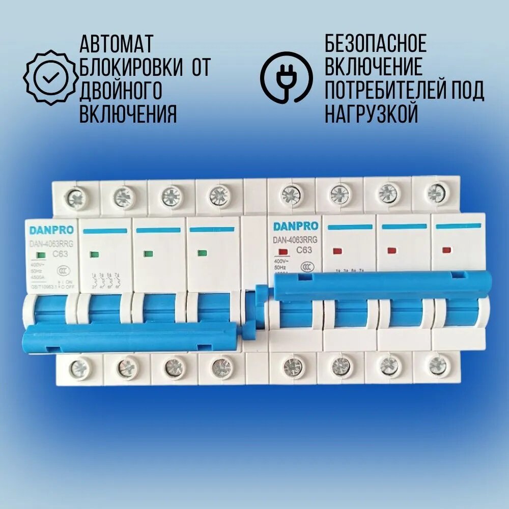 Рубильник реверсивный механический DANPRO, автоматический ввод резерва генератора, трехфазный 4P-4P на DIN рейку информация: