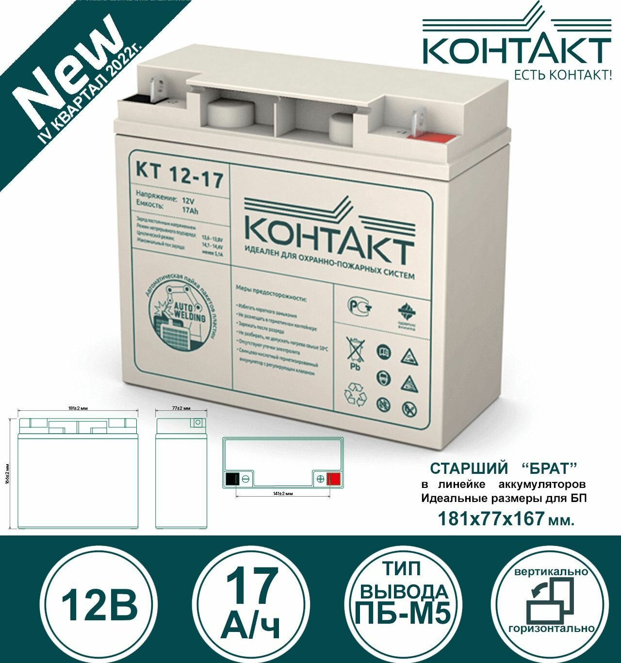 10 цен на Аккумуляторная батарея AGM КТ 12-17 12V 17А/ч (для ИБП, электромашин, лодок и пр.) Контакт