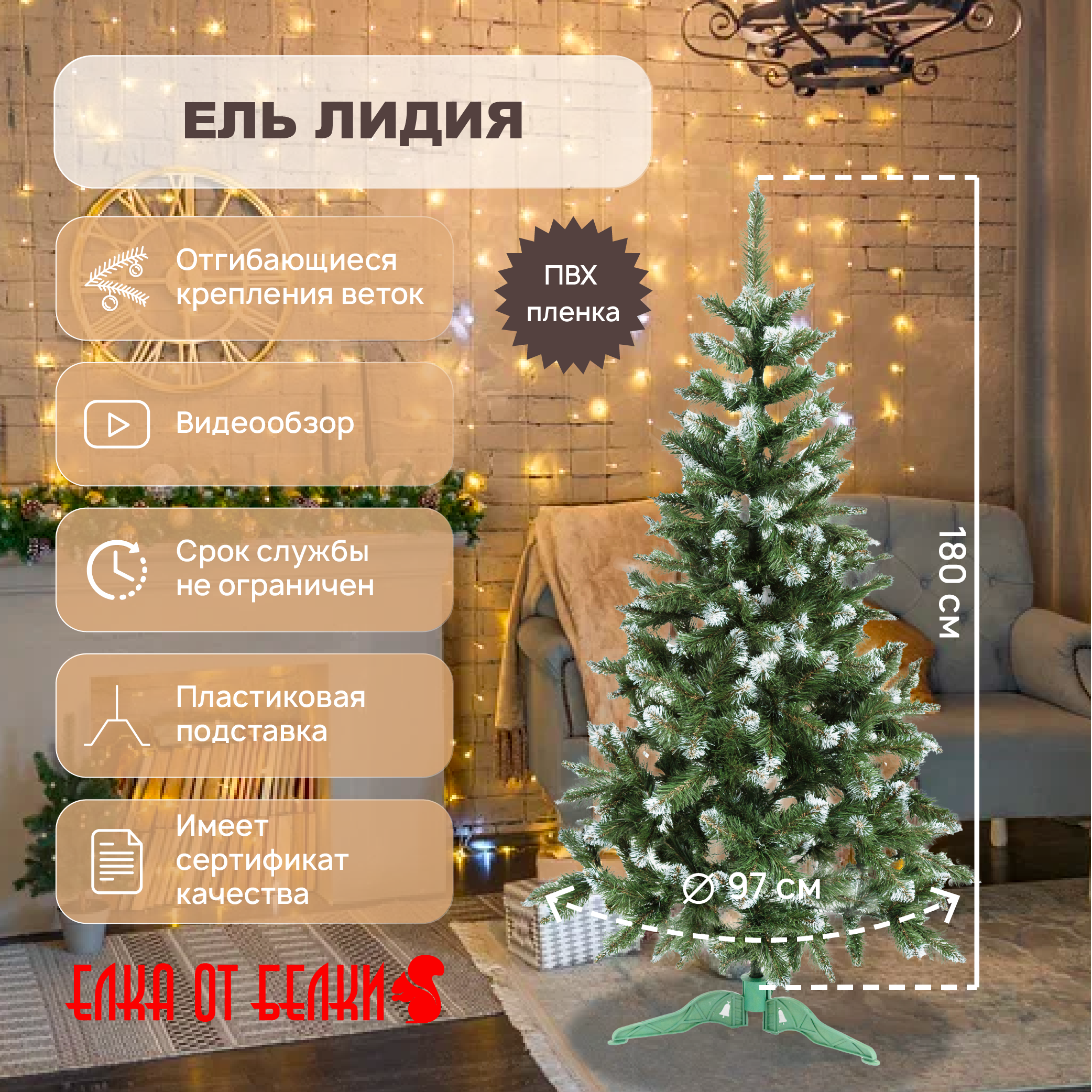 Искусственная Елка елка от белки, Лидия Из ПВХ, 180 см заснеженная много веток