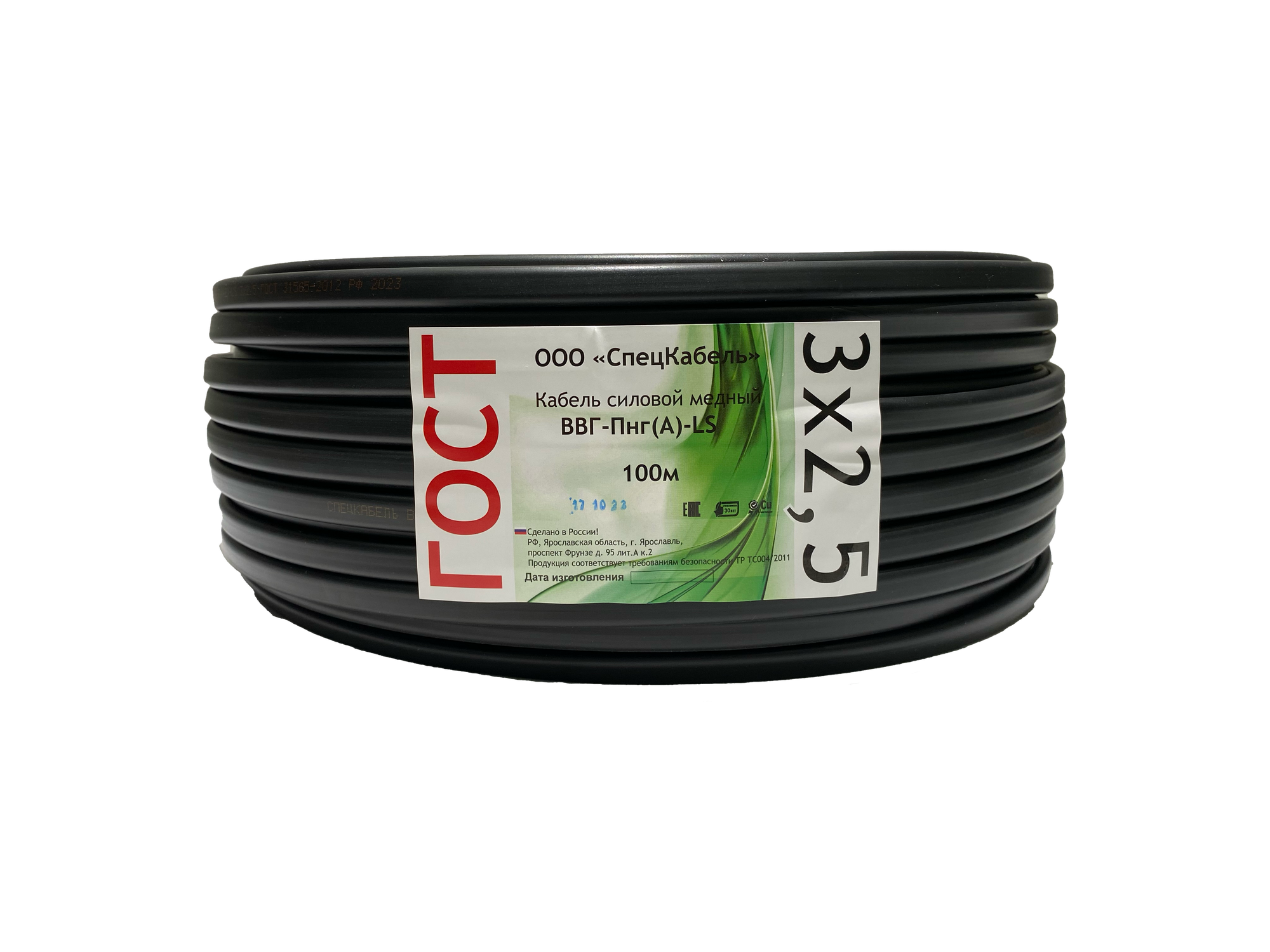 Силовой кабель ВВГ НГ LS 3x2,5 ГОСТ, Спец Кабель, (плоский, черный), 90 метров 7 700 ₽