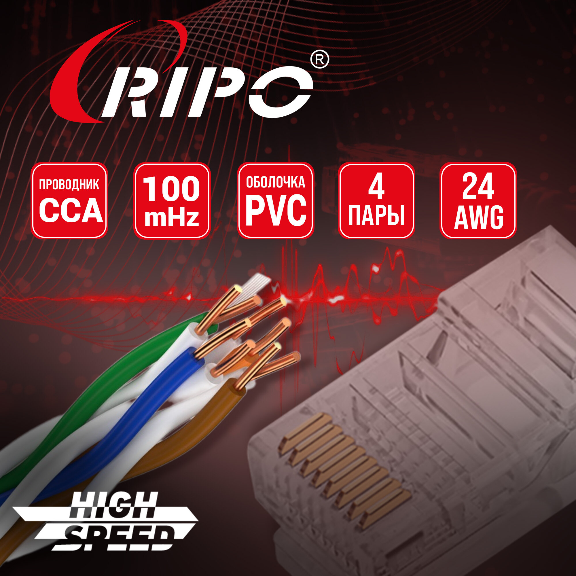 Витая пара, интернет кабель, провод для роутера WiFi алюмомедь внутренний LAN UTP4 CAT5E 24AWG CCA RIPO 100 метров 001-112002/100