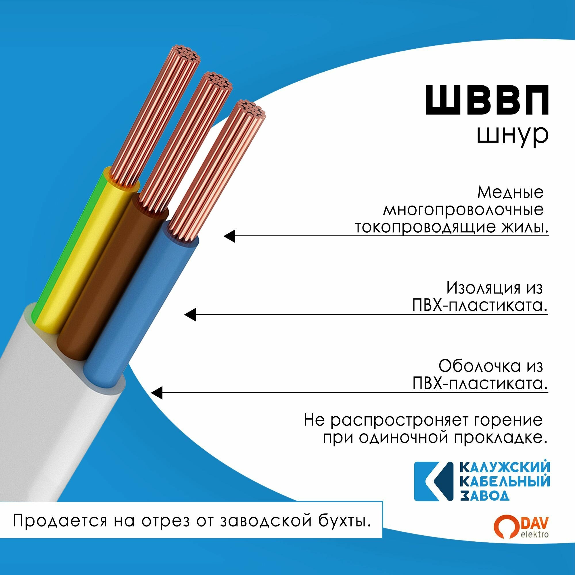 Отзывы на Электрический Кабель ШВВП 3х0,75 5метров ГОСТ Калужский кабельный завод Белый.