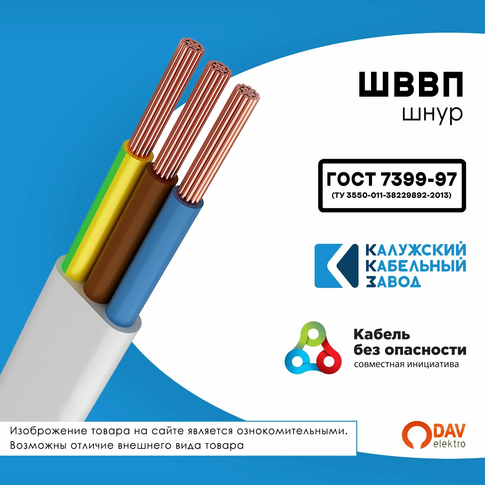 Отзывы на Электрический Кабель ШВВП 3х0,75 15метров ГОСТ Калужский кабельный завод Белый.