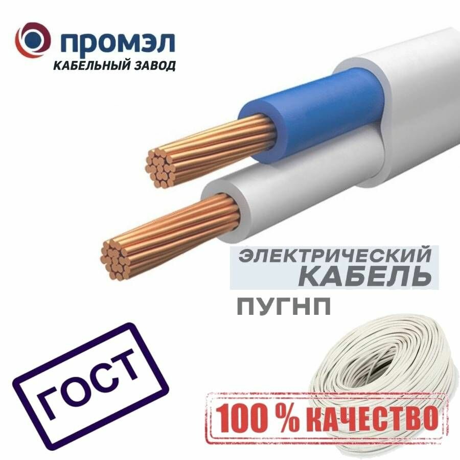 Провод ПромЭл ПуГВВ-П, сечение 1.5мм², 2 жилы, медный, гибкий, ПВХ