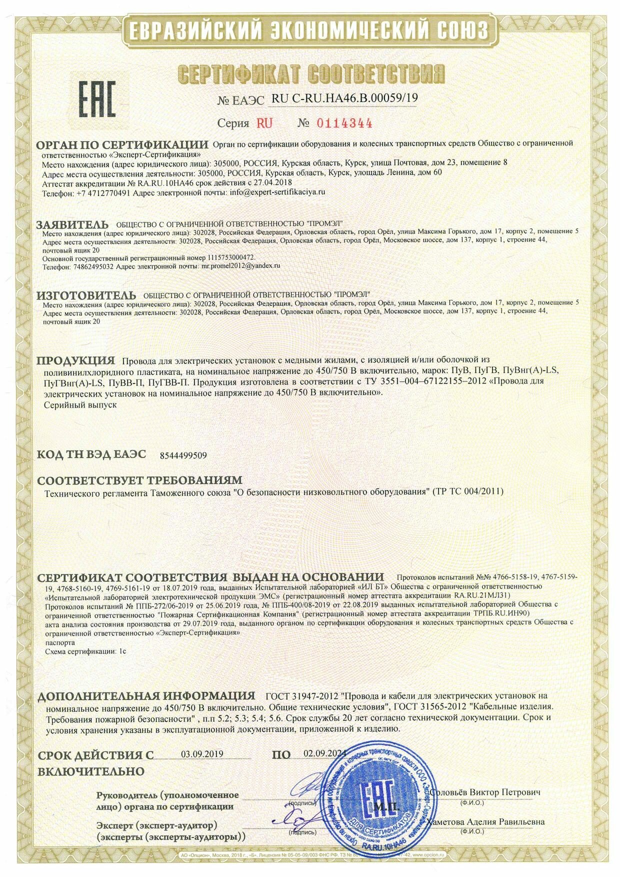 | Тип кабельного изделия | провод |