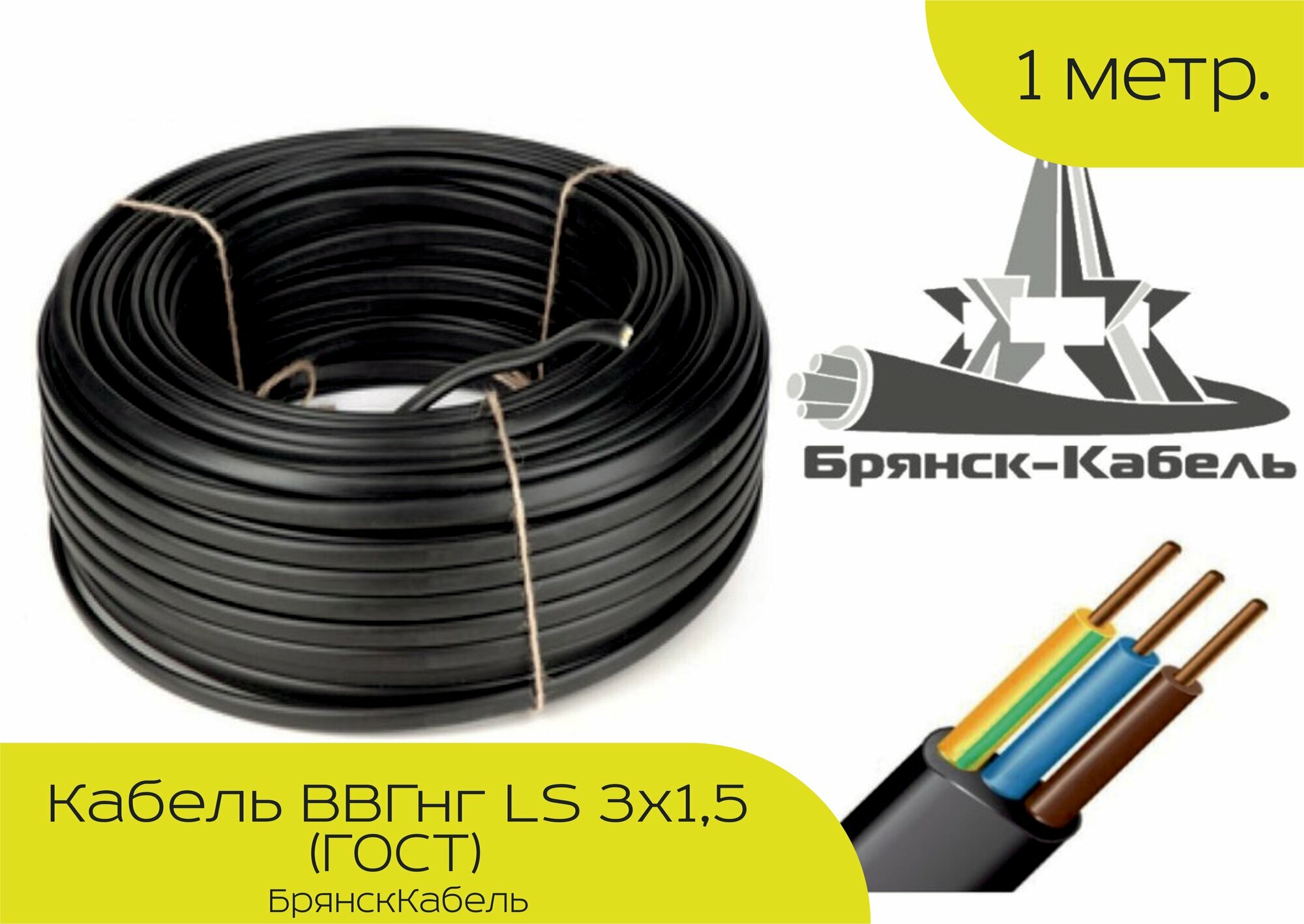 Кабель ВВГнг LS 3х1,5 (ГОСТ) (БрянскКабель) (1м) информация: