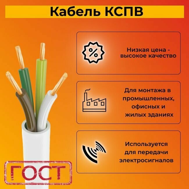 10 цен на Кабель для систем сигнализации/видеонаблюдения, домофонов ГОСТ КСПВ 4х0.4 мм (0,12 мм2) - 5 м.