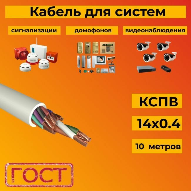 Кабель для систем сигнализации/видеонаблюдения, домофонов ГОСТ КСПВ 14х0.4 мм (0,12 мм2) - 10 м. информация: