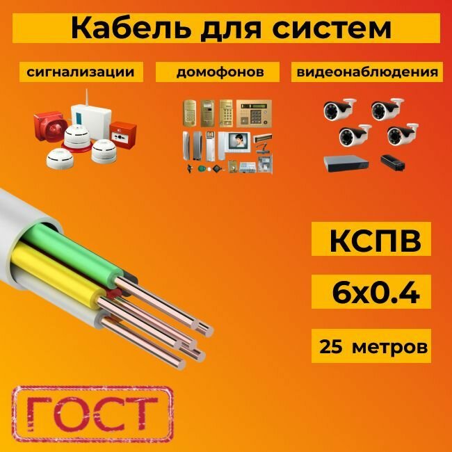 Кабель для систем сигнализации/видеонаблюдения, домофонов ГОСТ КСПВ 6х0.4 мм (0,12 мм2) - 25 м. информация: