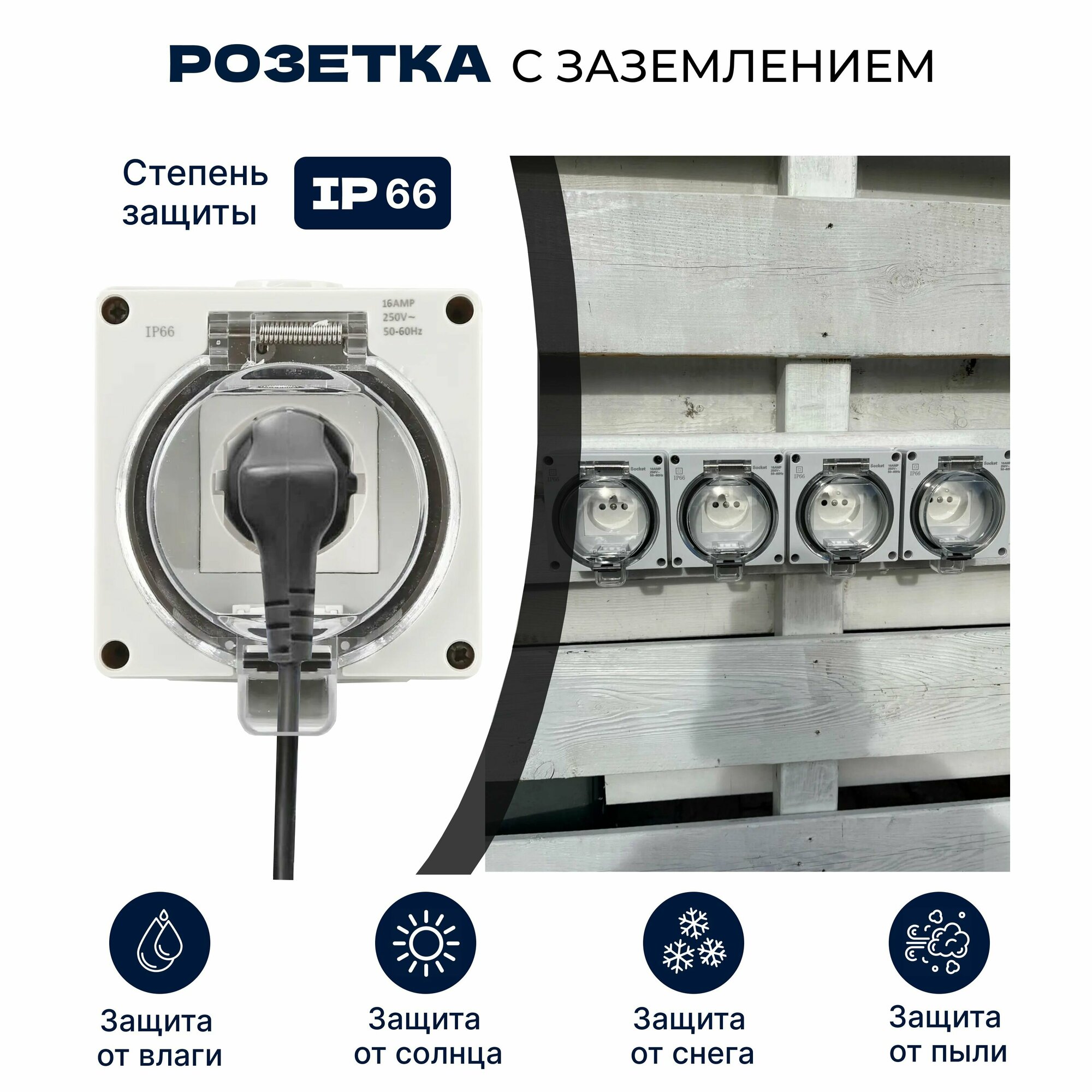 Отзывы на Розетка уличная IP66 влагозащищенная, садовая, наружная с крышкой, электророзетка накладная с заземлением 16А