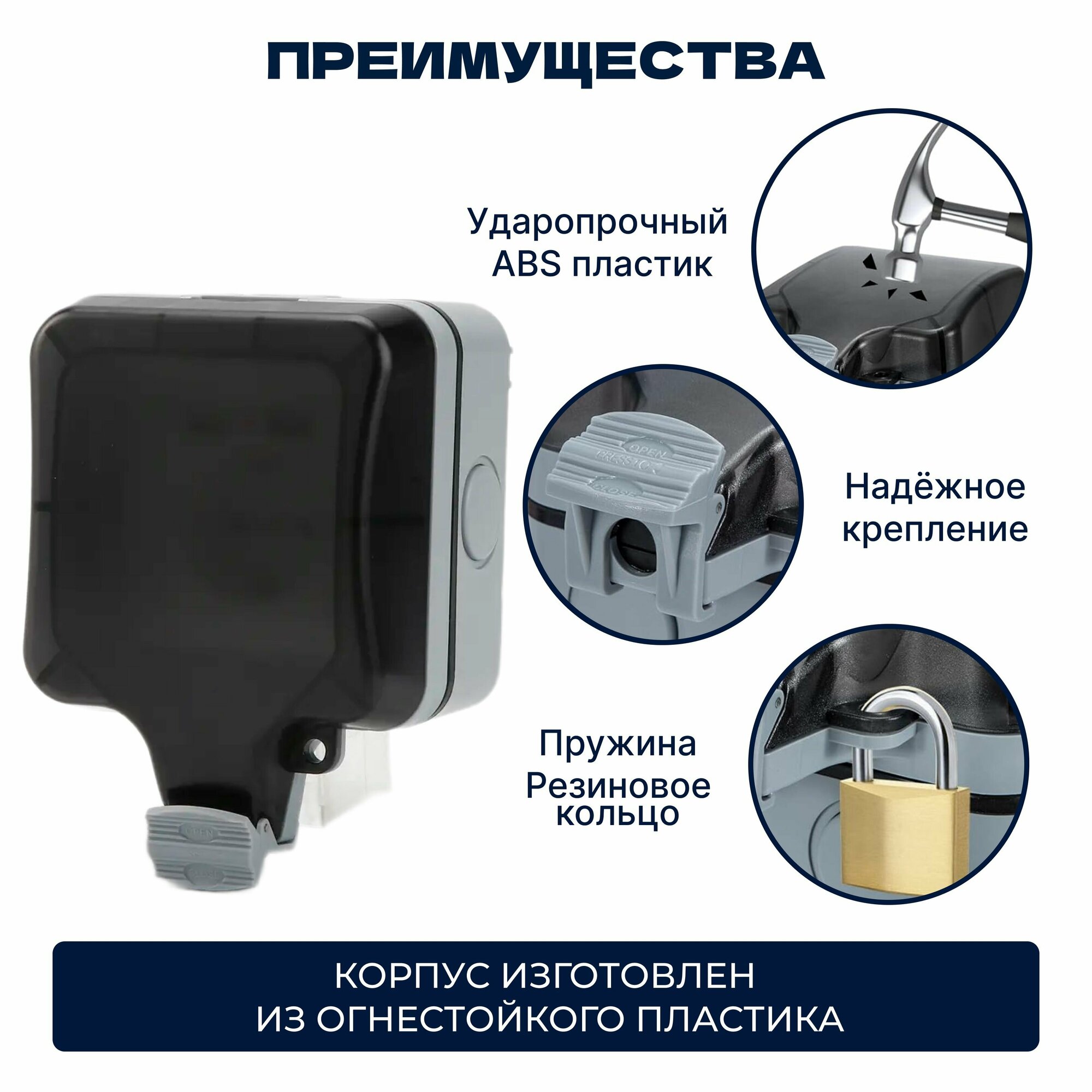 Розетка уличная IP66 влагозащищенная, садовая, наружная с крышкой, электророзетка накладная с заземлением 16А