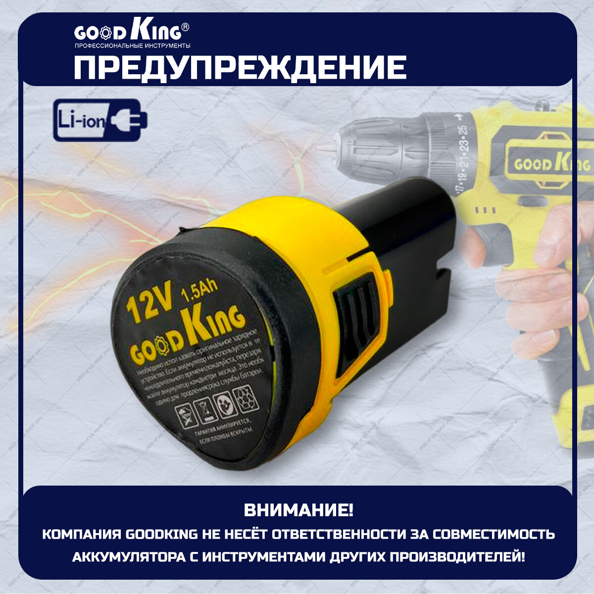 Аккумулятор для шуруповерта GOODKING EC-1201, 1.5 А*ч 12В информация: