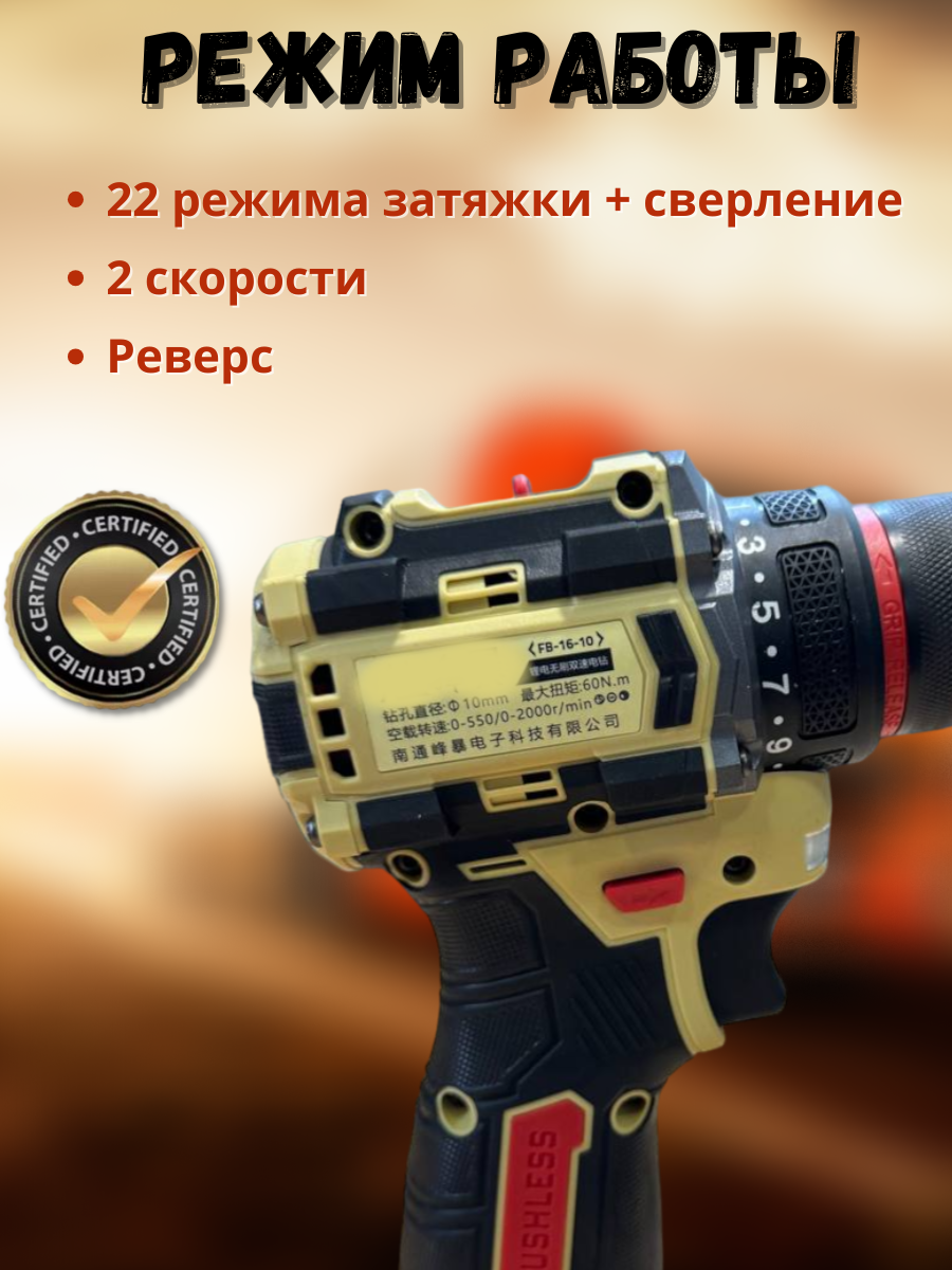 Бесщеточный шуруповёрт с двумя батареями 16 v информация: