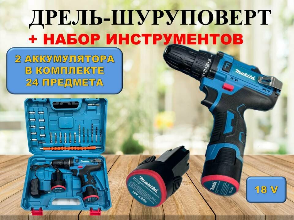 10 цен на Аккумуляторная дрель-шуруповерт, с кейсом и набором инструментов, 18V