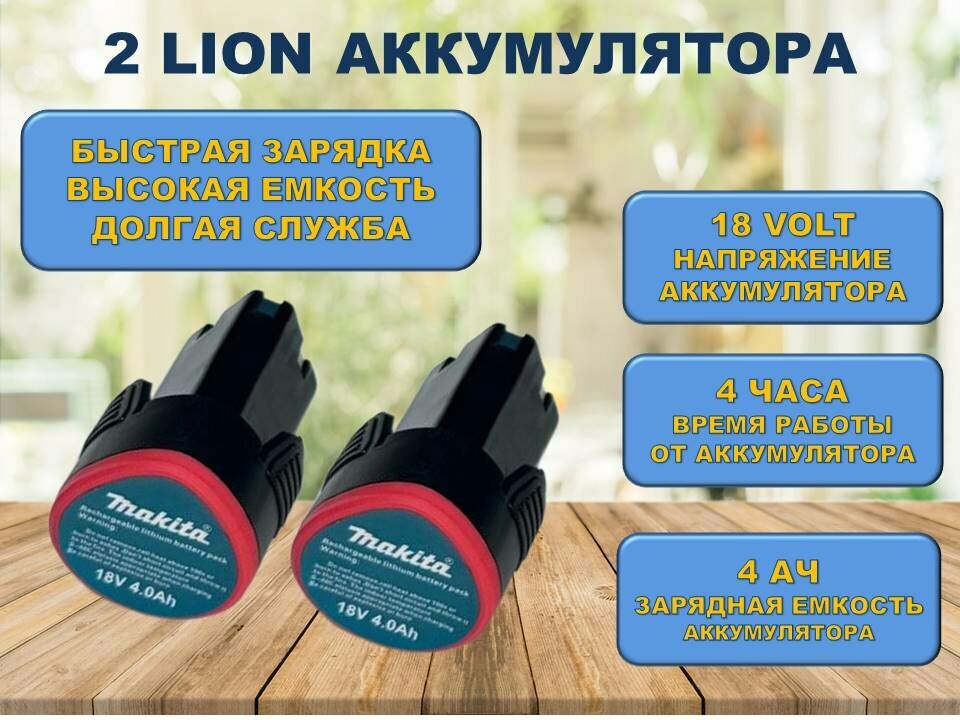 Аккумуляторная дрель-шуруповерт, с кейсом и набором инструментов, 18V информация: