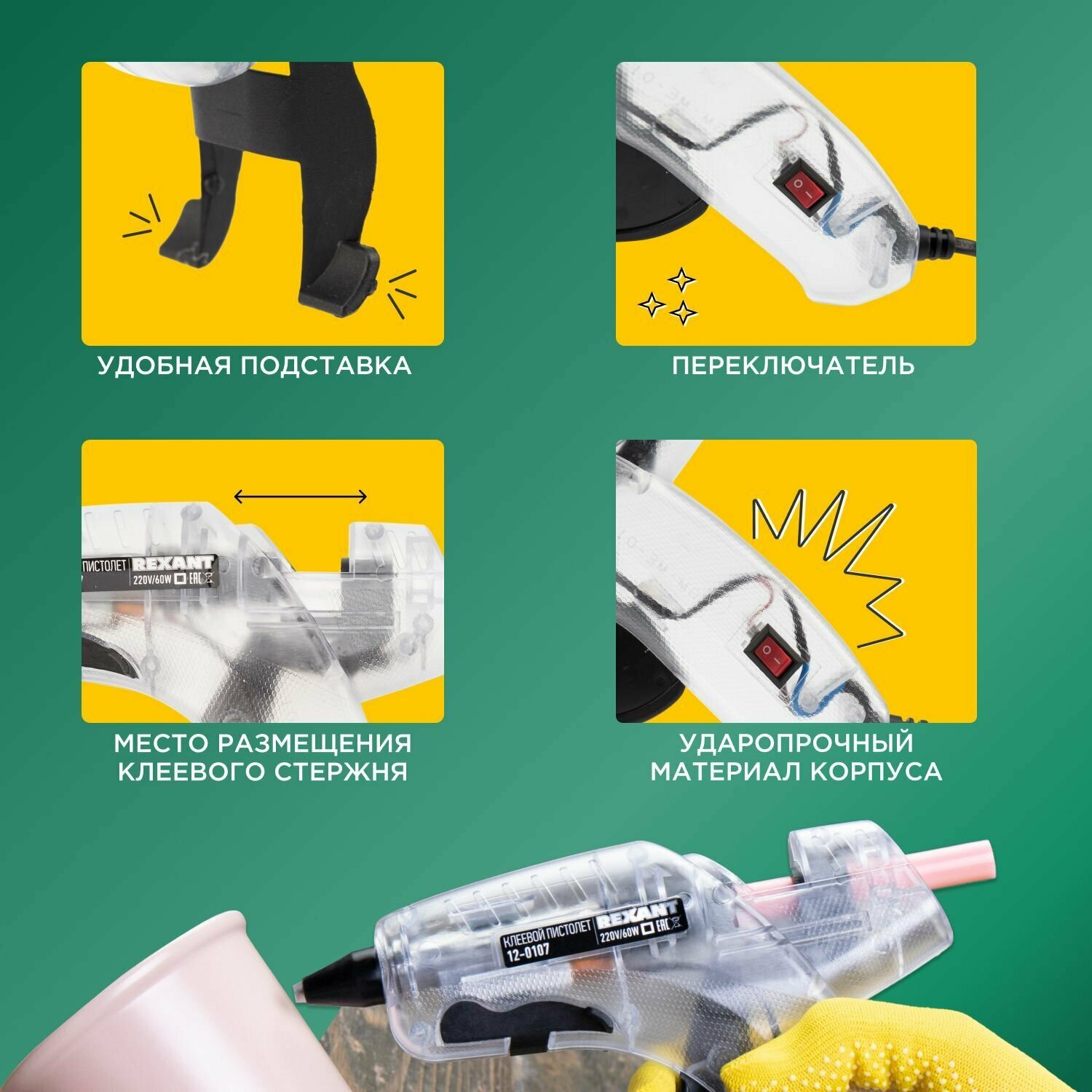 10 цен на Пистолет клеевой REXANT, 60 Вт, d11 мм с прозрачным корпусом