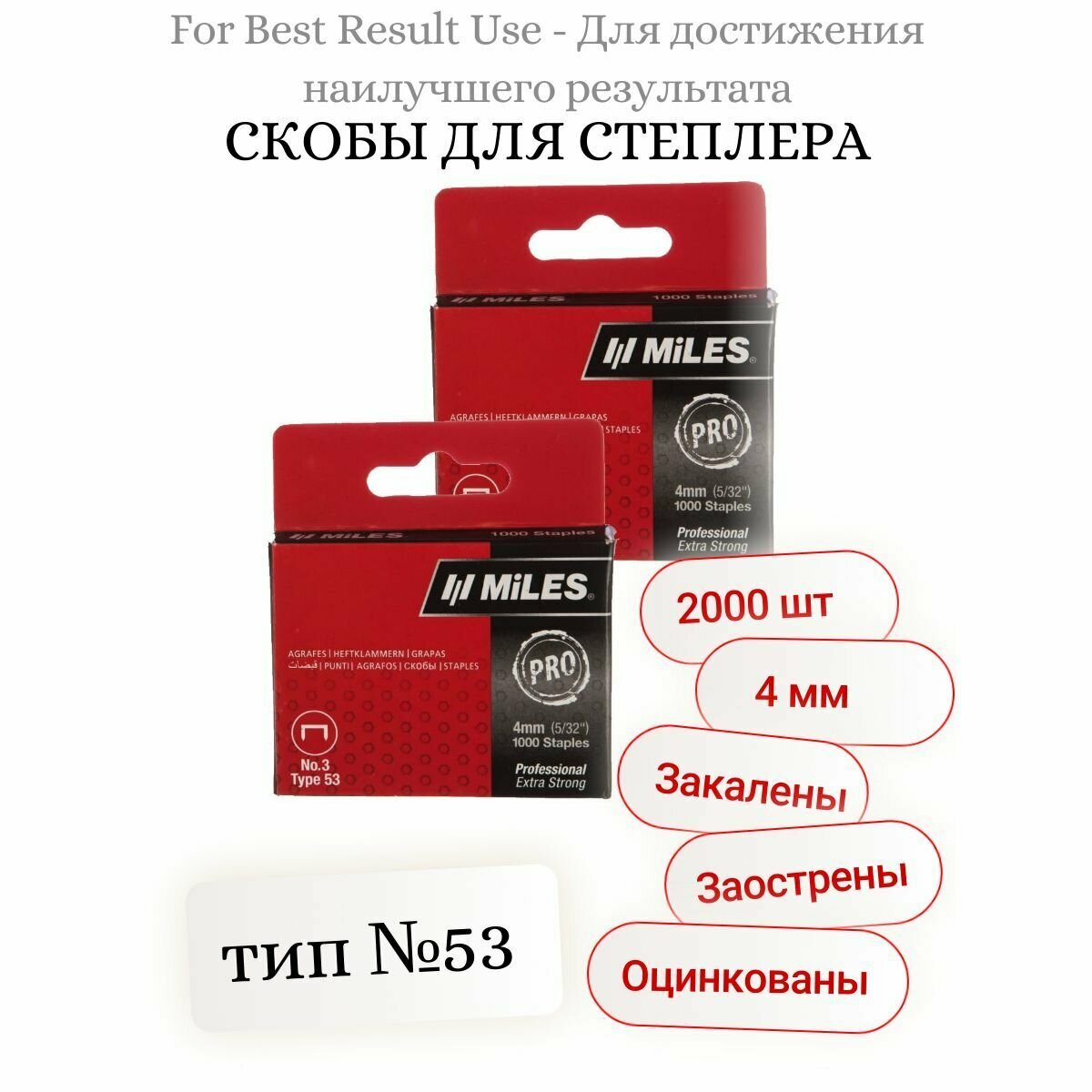 Скобы для степлера, тип №53, 4мм, PRO, закалены, оцинкованы 2000шт информация: