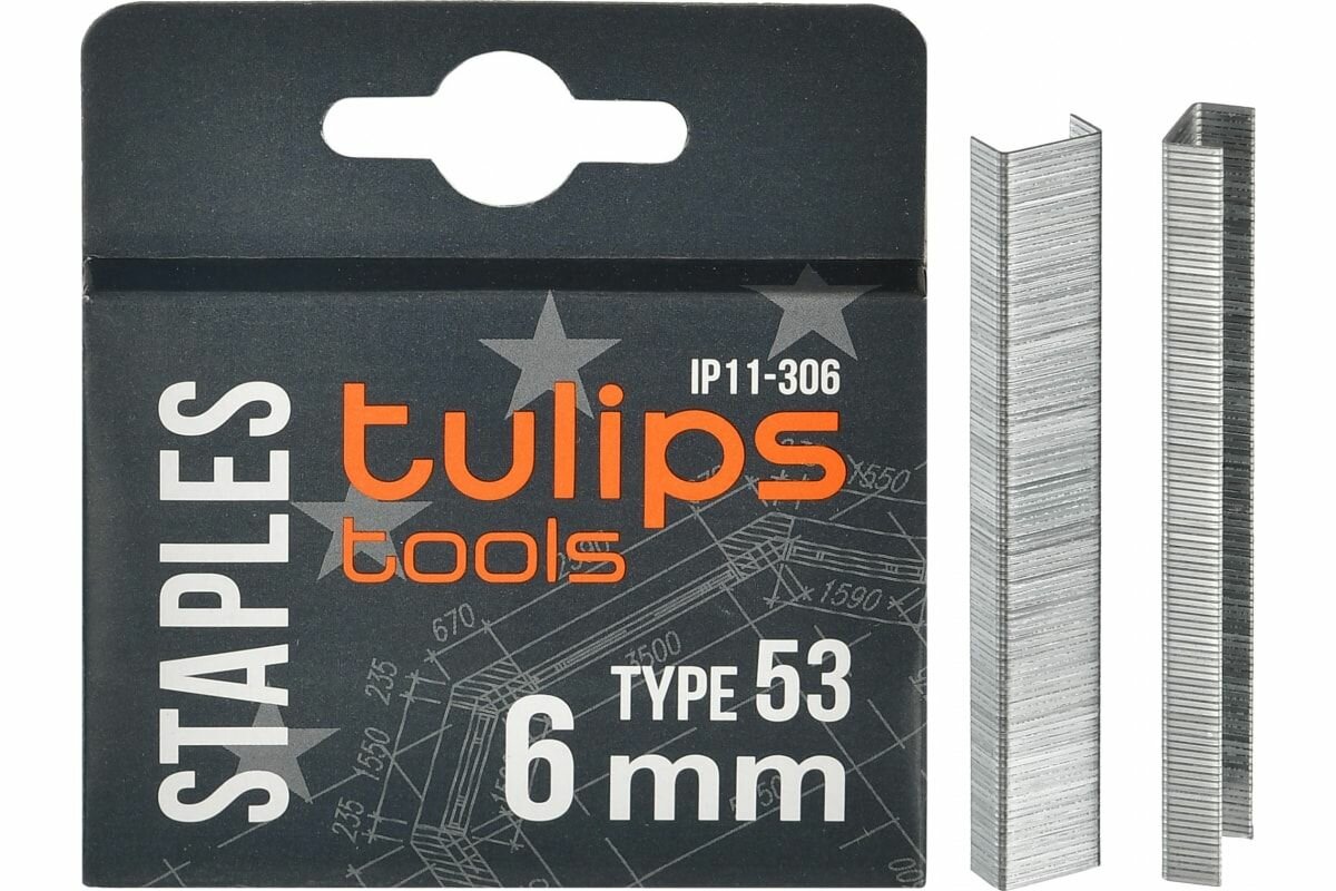 10 цен на Скобы для мебельного степлера Tulips tools, тип 53, 6 мм, IP11-306, 1000 штук