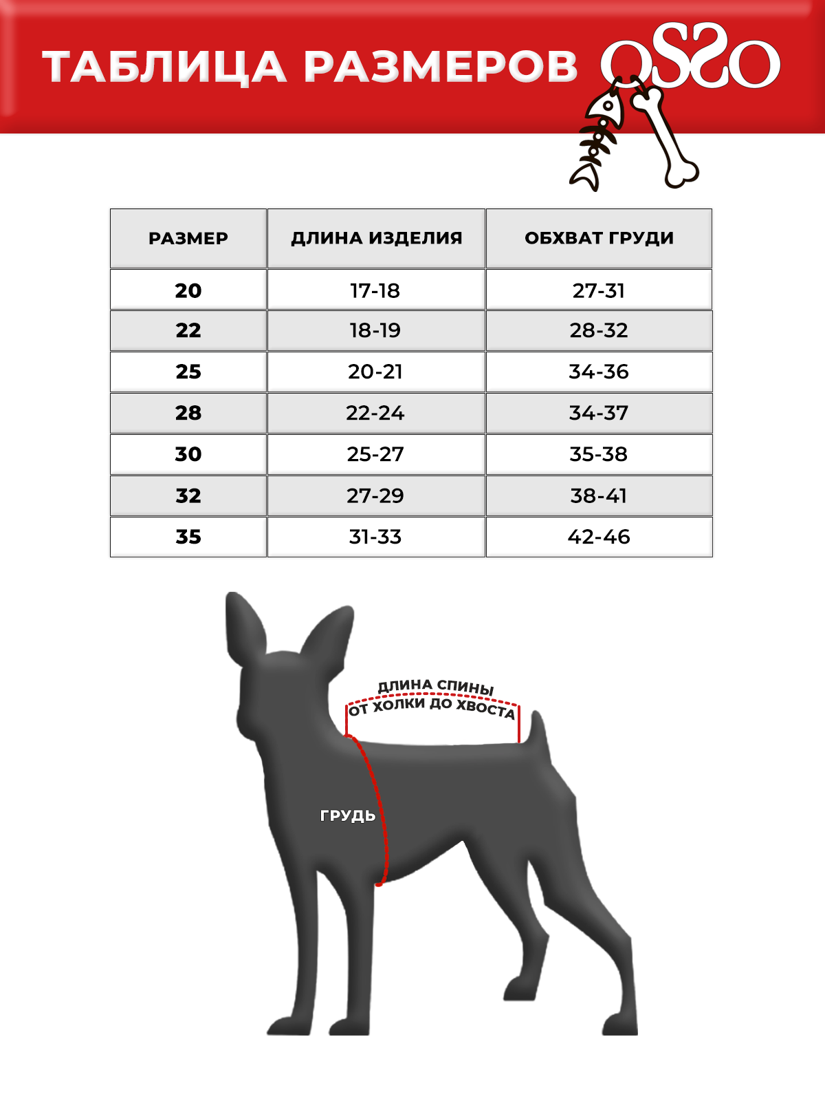 Футболка OSSO для собак "Лапки", размер 22 (ДС 22 см, ОГ 32-34 см) 995 ₽