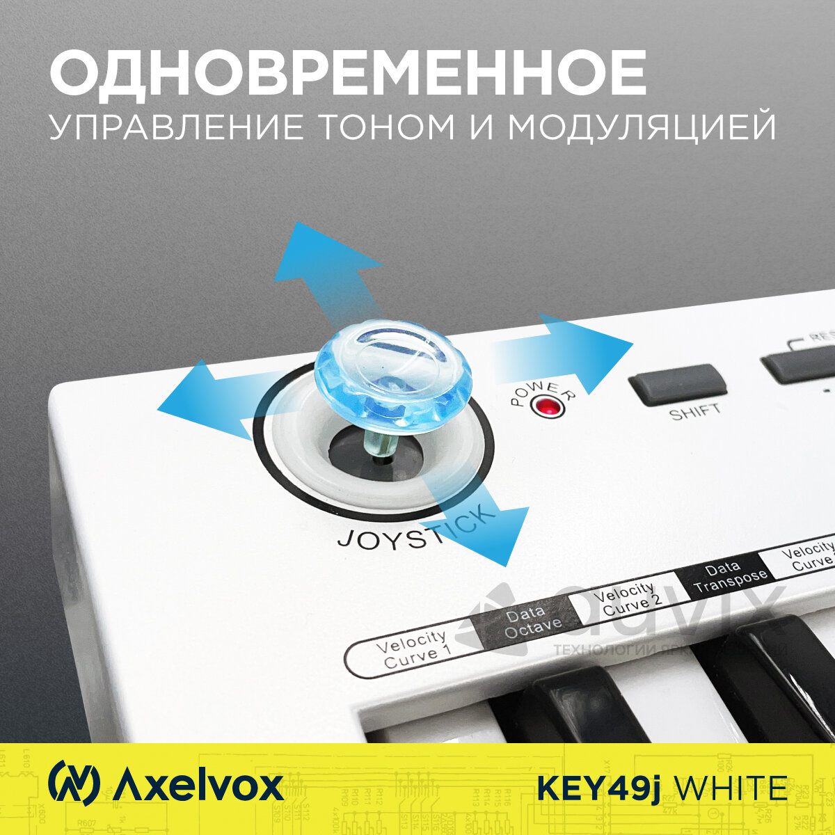 Axelvox KEY49j White динамическая MIDI клавиатура USB, 4-октавная (49 клавиш)