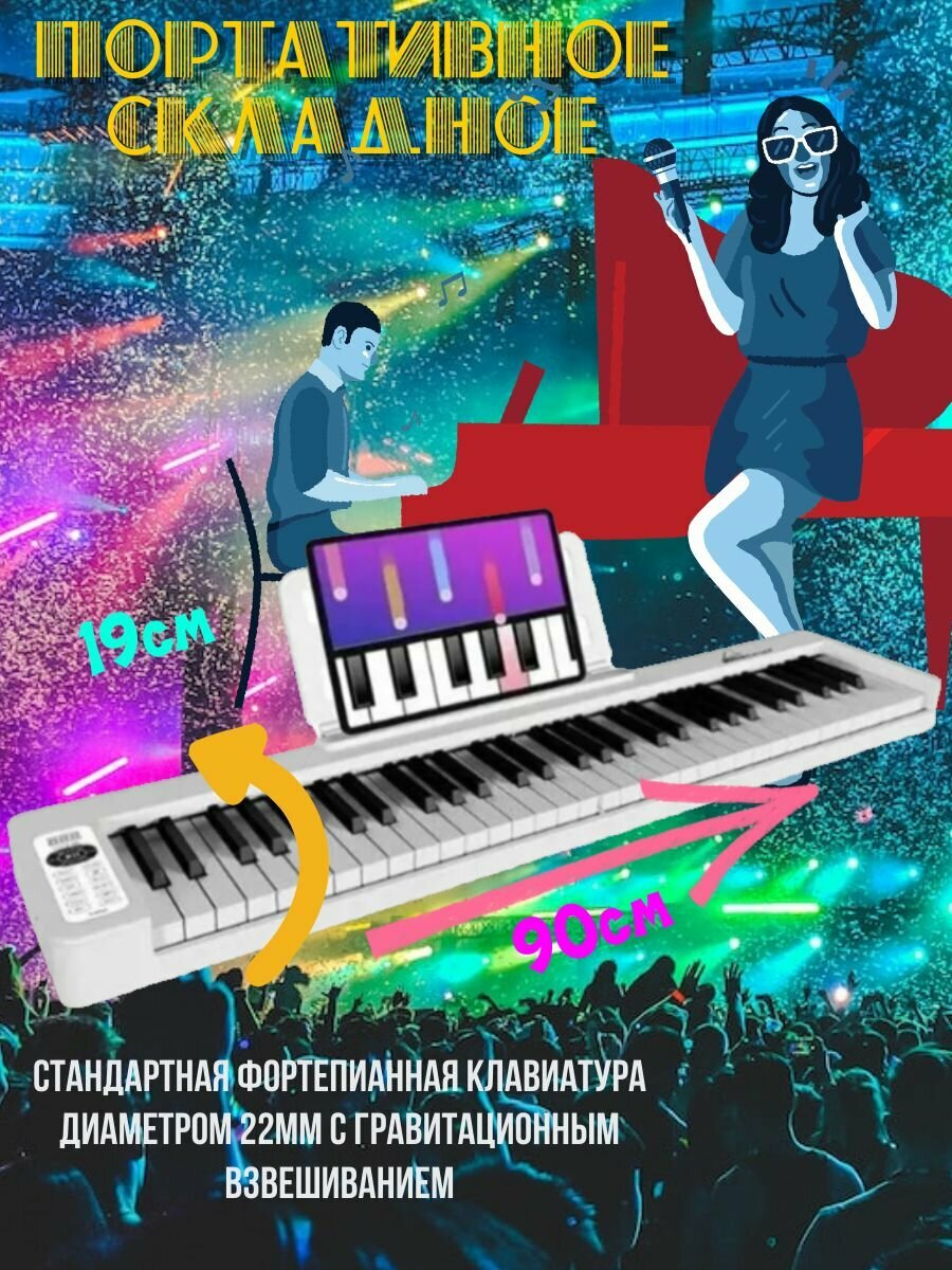 Отзывы на Портативное складное электронное пианино с 61 клавишей складное пианино белое