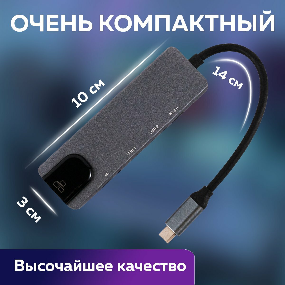 USB Type-C хаб Onten на 6 портов HDMI , 2xUSB 3.0 , SD/TF , Type-C PD - Серый