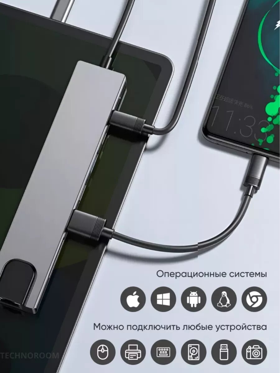 Hub type-c 8 портов, концентратор, HDMI, Type-C, USB 3.0