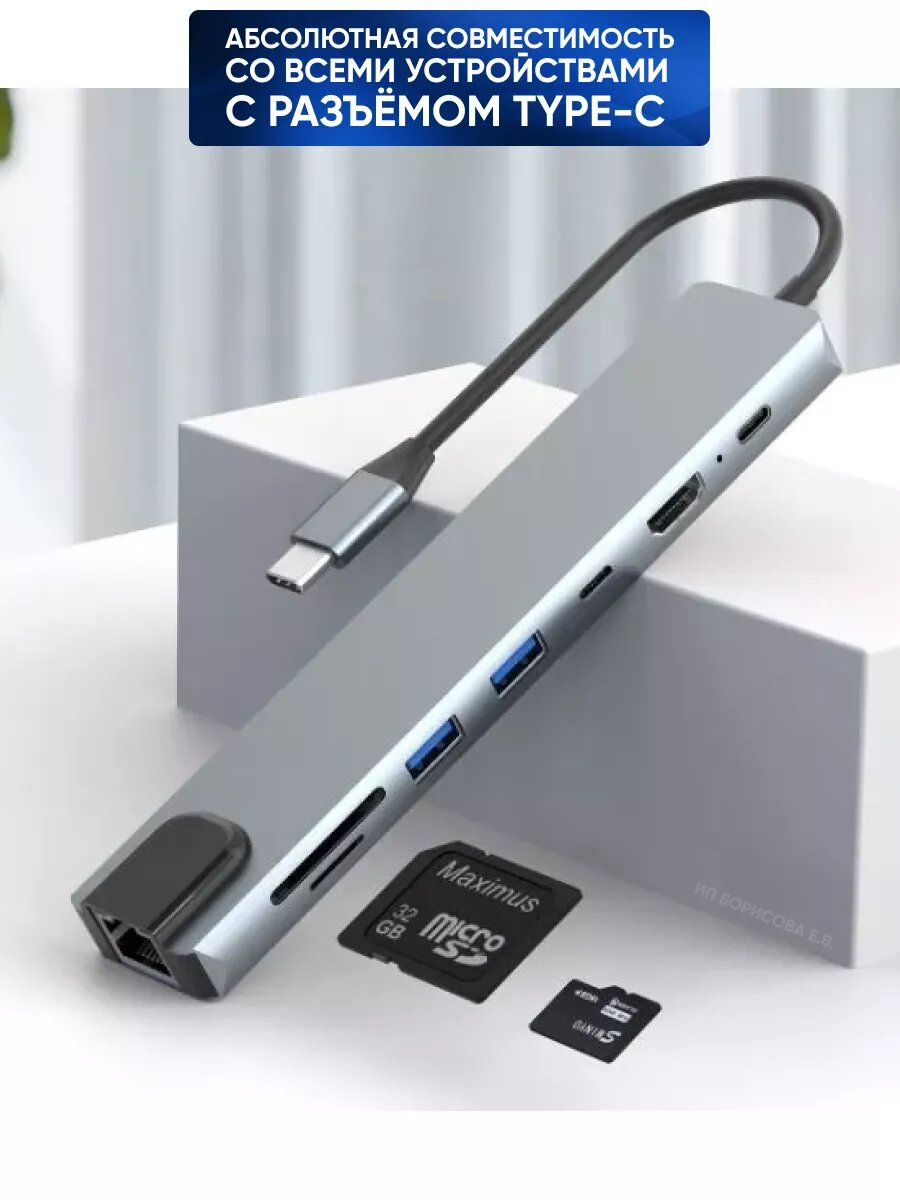 10 цен на Переходник- HUB для MacBook Type-C 8в1, HDMI,USB 3,0, lan разъём, концентратор