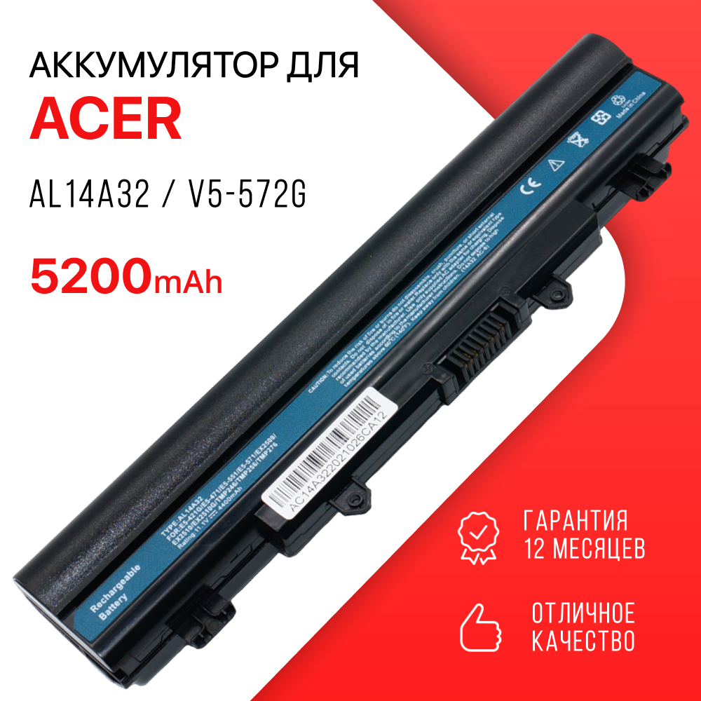 Отзывы на Аккумулятор для Acer AL14A32 / Aspire V5-572G / E5-521 / E1-571 / E5-571 / 2510 / E5-511 / V3-572G / V5-572PG / 2510G / E5-531 / E5-551 / V5-572 (5200mAh, 11.1V)