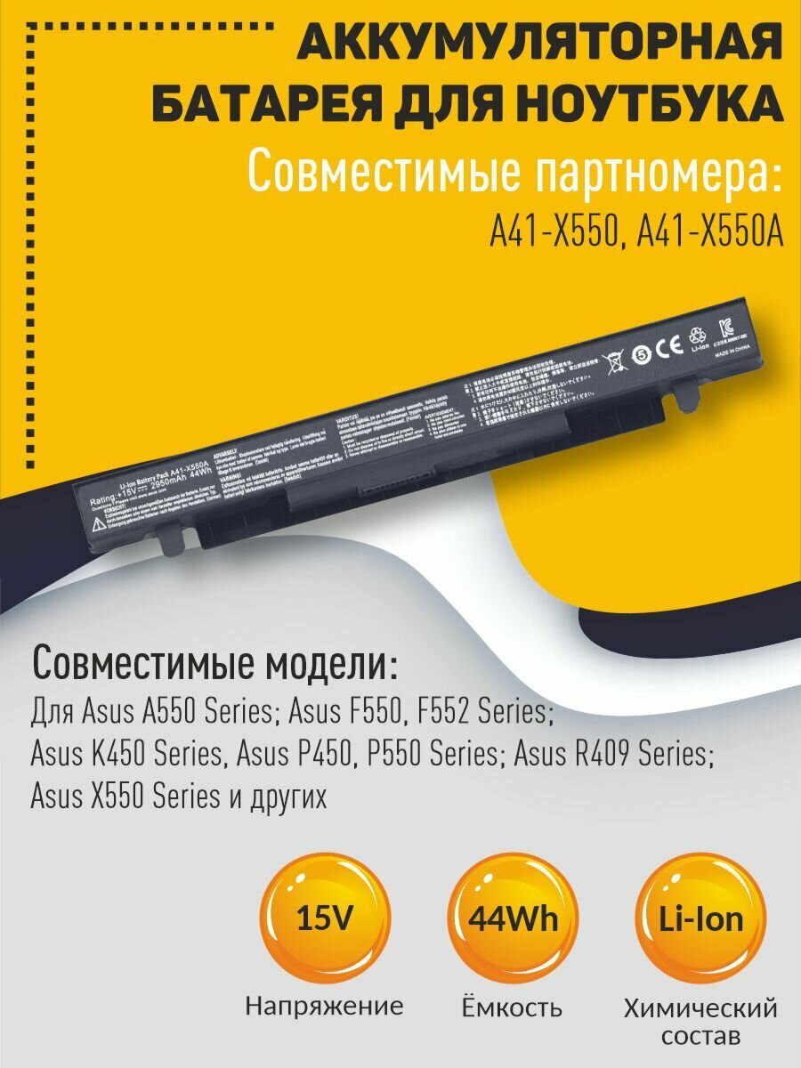 Аккумуляторная батарея для ноутбука Asus X550 (A41-X550A) 15V 44Wh черная информация: