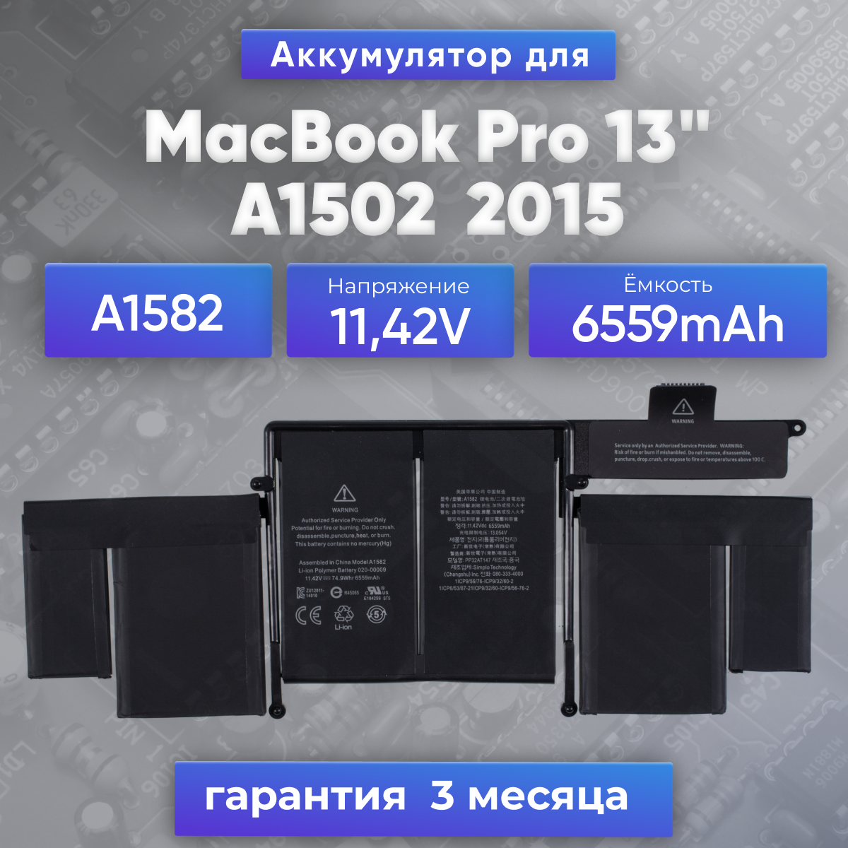 Аккумулятор A1582 для ноутбука MacBook Pro 13" A1502 (EMC 2835) Early 2015 / 11,42V 6559mAh 75Wh информация:
