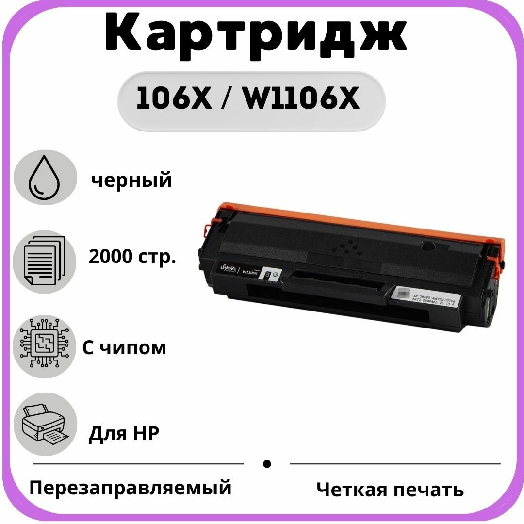 Картридж Sakura Printing SAKURA W1106X для HP LaserJet 107a/ 107r/ 107w/ 135a/ 135r/ 135w/ 137fnw, черный, 2500 к.