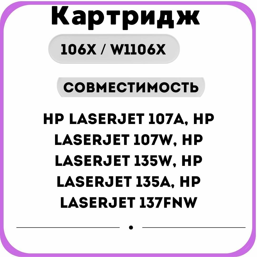 Картридж Sakura W1106A (106A) совместим с принтерами и МФУ HP LJ 107a / LJ 107r / LJ 107w / LJ 135a / LJ 135r/LJ 135w/LJ 137fnw