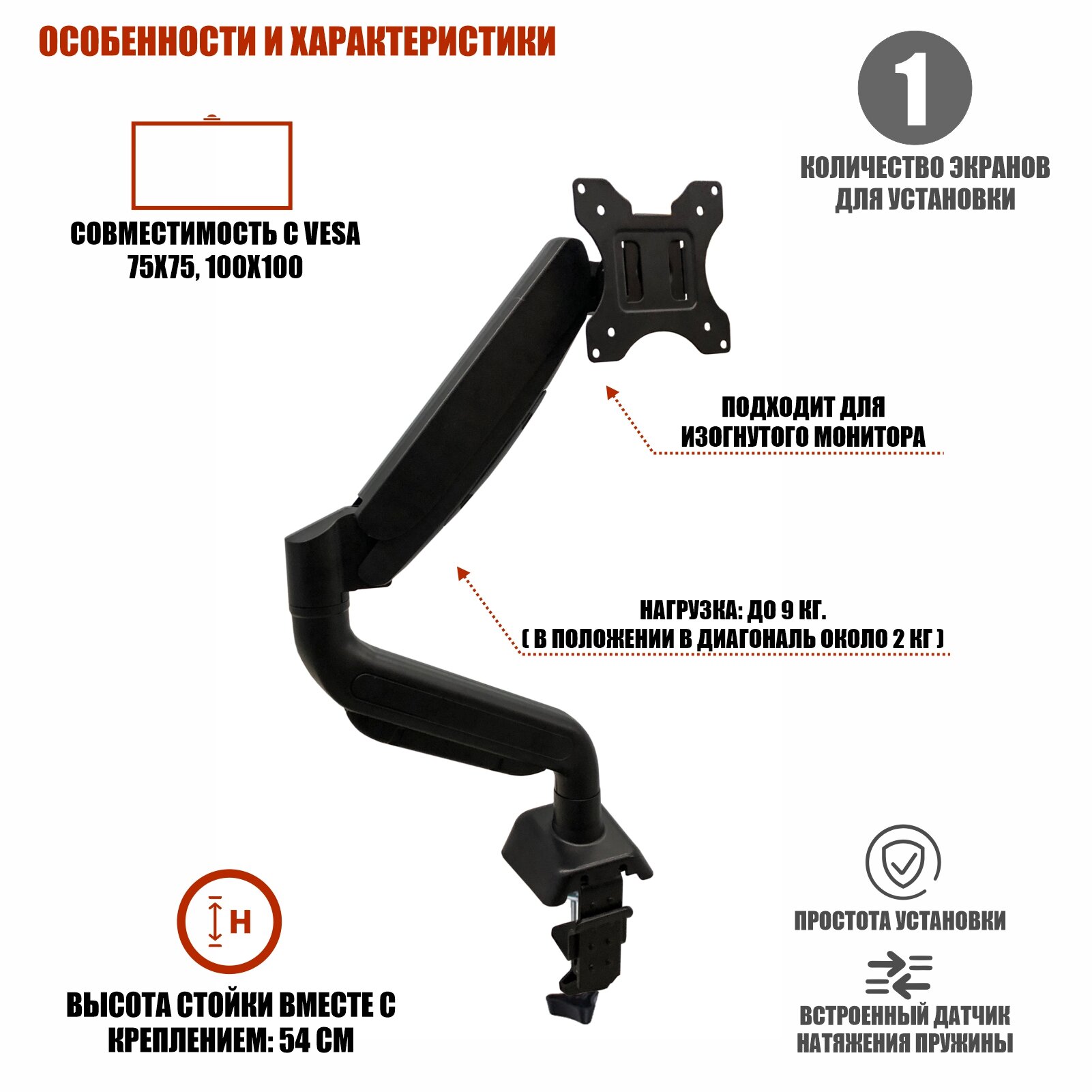 10 цен на Кронштейн C012 для монитора 17"-32" настольный с газлифтом, черный