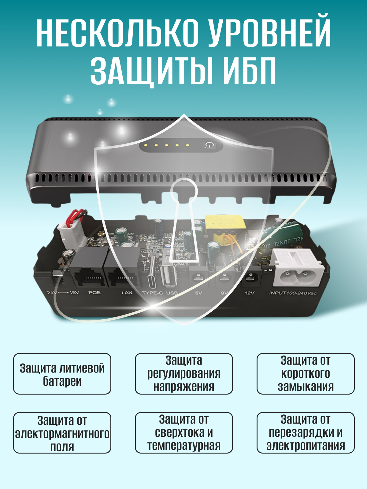 Мини-UPS для роутера (12В, 9В, 5В, USB, PoE 12-24. LAN) Источник бесперебойного питания.