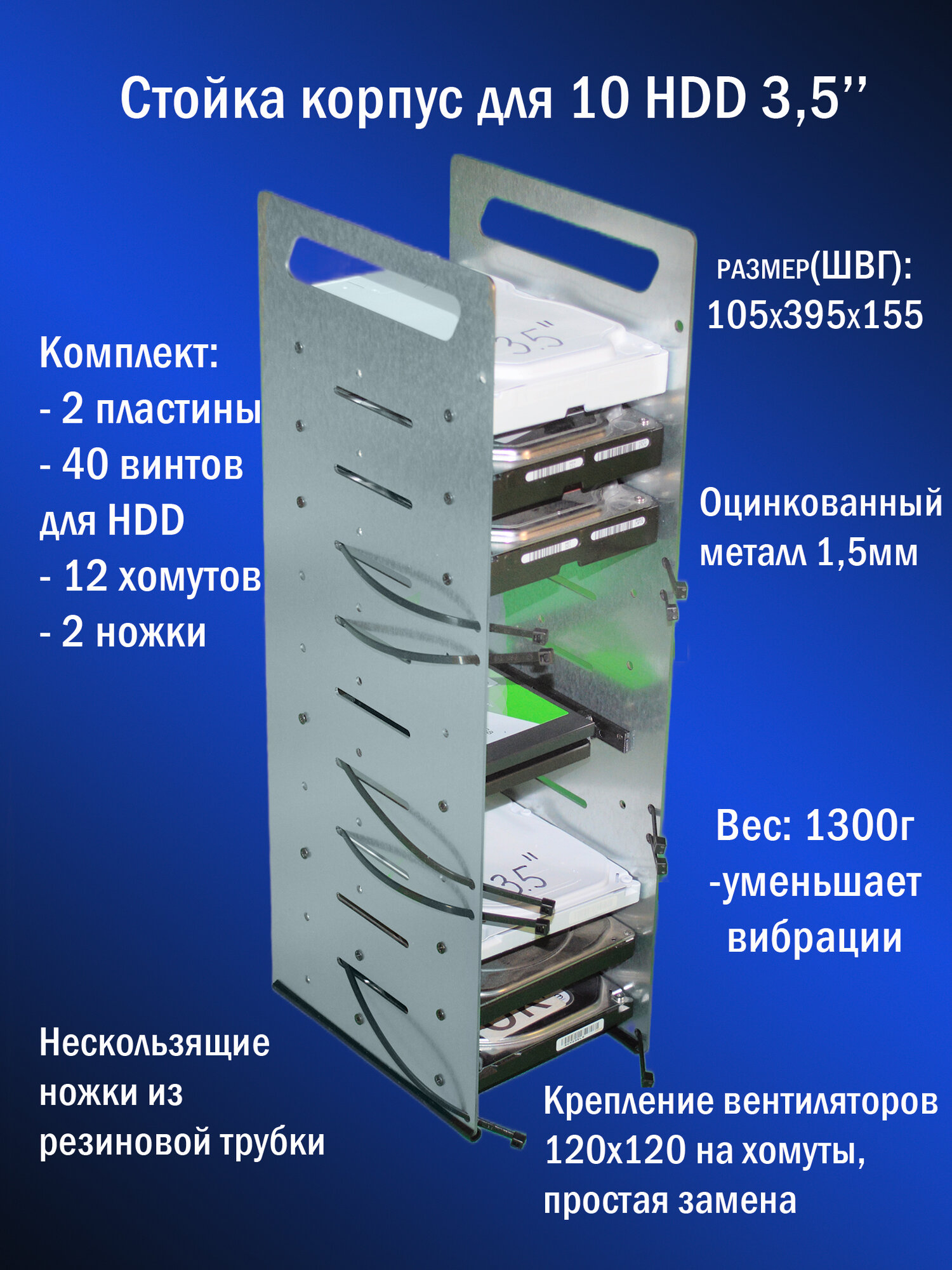 10 цен на Корпус-стойка для 10 жестких дисков 3.5" Оцинкованная без покрытия