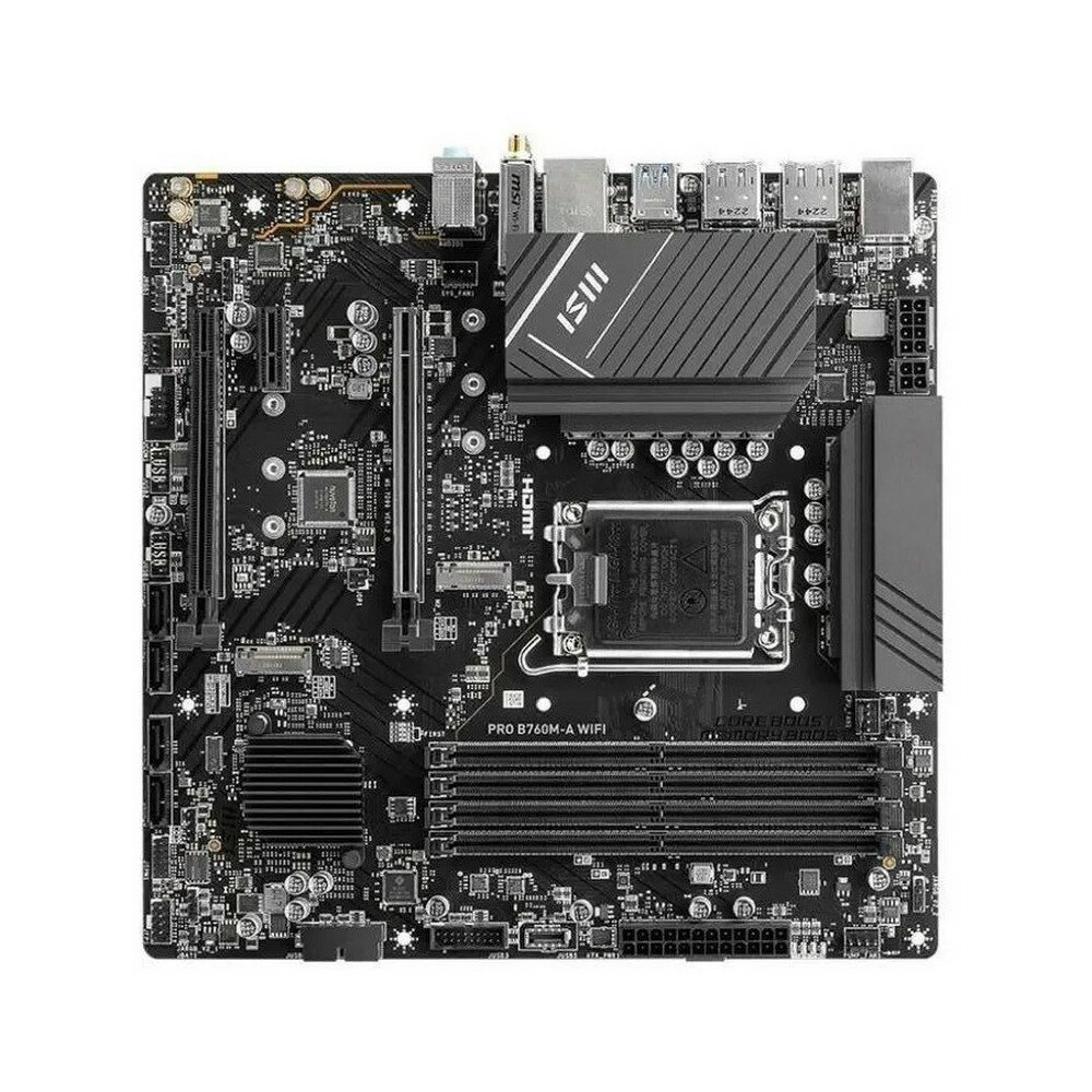 10 цен на Материнская плата MSI PRO B760M-A WIFI (LGA 1700, Intel B760, 4xDDR5-5600 МГц, 2xPCI-Ex16, 2xM.2, Micro-ATX)