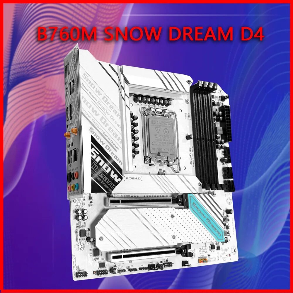 JGINYUE Материнская плата B760M Snow Dream ;4*DDR4;3*M2;Поддержка процессоров Intel 12-го, 13-го и 14-го поколений; LGA1700 информация:
